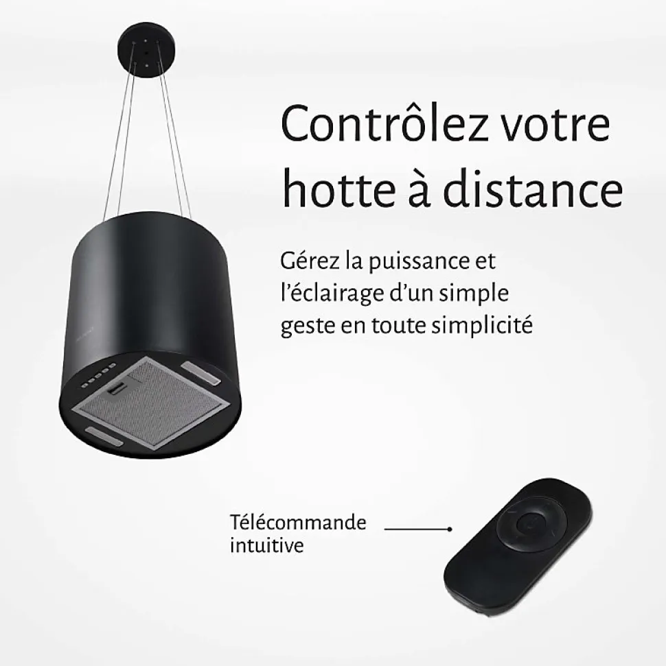 - Hotte à recyclage, équipée d’une télécommande et d’un éclairage puissant. Filtres à graisse en aluminium : lavables en lave-vaisselle.