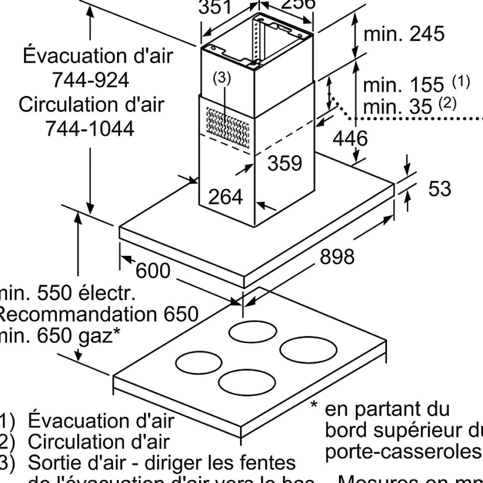 Présentation du ProduitLa hotte îlot BOSCH DIB97IM50 est conçue pour les cuisines modernes et ouvertes, offrant une largeur de 89,8 cm. Elle est fabriquée en acier inoxydable, ce qui lui confère une apparence élégante et robuste. Cette hotte est idéale pour les grandes cuisines, grâce à son débit d’aspiration élevé et à sa capacité à fonctionner en mode évacuation ou recyclage.Caractéristiques TechniquesLa hotte îlot BOSCH DIB97IM50 dispose de trois vitesses d’aspiration ainsi qu’un réglage intensif, permettant une extraction d’air maximale de 438 m³/h et pouvant atteindre 754 m³/h en position turbo. Elle est équipée d’un système de commande électronique tactile pour un usage intuitif. Le niveau sonore est relativement bas, avec une puissance sonore de 57 dB à vitesse maximale, assurant un environnement de cuisine confortable.Conception et ErgonomieConçue pour faciliter le nettoyage, cette hotte îlot présente des vis et câbles cachés ainsi que des arêtes arrondies. Elle est également équipée d’un éclairage LED pour une illumination optimale de la zone de cuisson. La sélection rapide des paramètres via le panneau tactile ajoute à son ergonomie.Avantages et UtilisationLa hotte îlot BOSCH DIB97IM50 est idéale pour les cuisiniers qui recherchent à la fois performance et facilité d’utilisation. Elle est parfaite pour les grandes cuisines où l’air doit être renouvelé rapidement, tout en offrant un design élégant qui s’intègre bien dans n’importe quel décor.