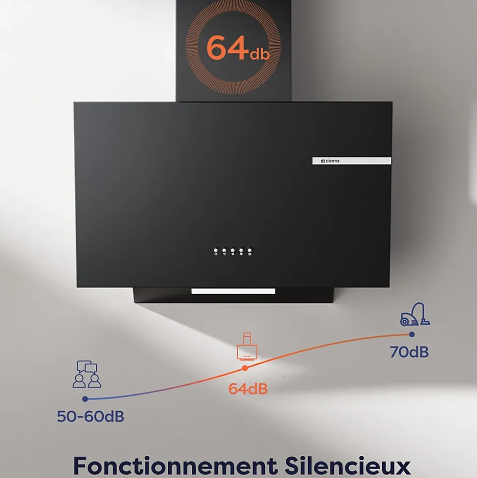 Hotte inclinée 60cm classe a+ 600m3h 3 vitesses évacuation ou recyclage noir CD6765AB CiarraHotte aspirante murale inclinée 60 cm – Puissance, silence et économie d’énergieDécouvrez la hotte aspirante inclinée murale 60 cm idéale pour les cuisines modernes. Classée énergie A+, elle garantit une consommation maîtrisée tout en offrant une aspiration puissante jusqu’à 600 m³/h pour éliminer efficacement fumées, odeurs et graisses.