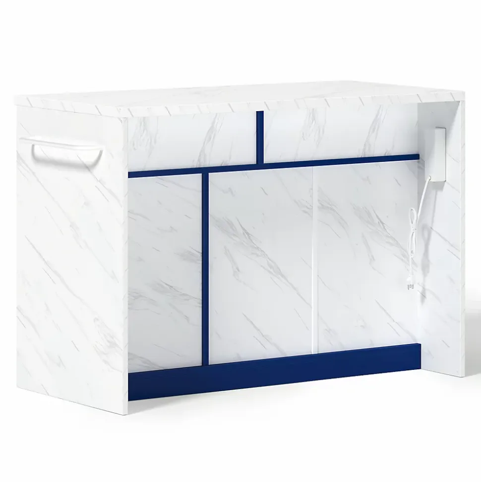 ▶ ▶ Détails ▶────────────────● Type de produit : Îlot de cuisine● Matériau : MDF● Couleur : Blanc+Bleu● Dimensions du produit : 120 × 60 × 91 cm (L × P × H)● Poids du produit : 46,85 kg● Temps de montage estimé : 40–80 minutes● Style du produit : Européen● Montage requis : Oui● Origine : Chine● Nombre de colis : 2► Remarques ►※ Nettoyer avec un chiffon doux et sec.※ Les ferrures peuvent se desserrer avec le temps; vérifier régulièrement que toutes les connexions sont bien serrées.