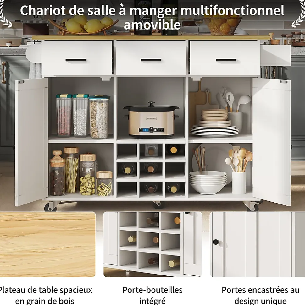 Caractéristiques du produitCe meuble comprend 3 tiroirs, 2 portes et un compartiment de rangement pour les ustensiles de cuisine. Sa construction flexible et robuste garantit une conservation optimale des aliments, essentielle dans un contexte de plus en plus répandu. Gain de place : idéal pour les traiteurs et les restaurants, ce meuble est également un choix parfait pour les chefs de renom.Spécifications techniques :Dimensions déplié : 124 x 65 x 91,5 cm (Longueur x Largeur x Hauteur)Dimensions plié : 104 x 40 x 91,5 cm (Longueur x Largeur x Hauteur)Poids : 46 kgMatériau : Panneaux de fibres de moyenne densité (MDF)Charge maximale supportée : 60 kgQuantité : 2