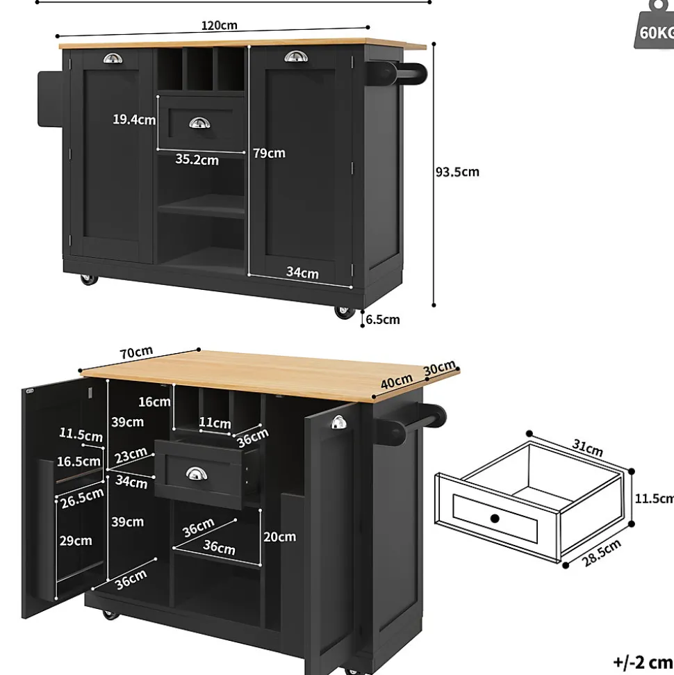 - 【Rangement Bien Pensé】 Doté d’une combinaison de tiroirs et d’étagères fermées, ce chariot de cuisine permet de stocker vos ustensiles, appareils de cuisine et autres articles de manière ordonnée. Fini le fouillis, tout trouve sa place.