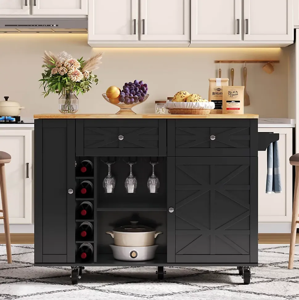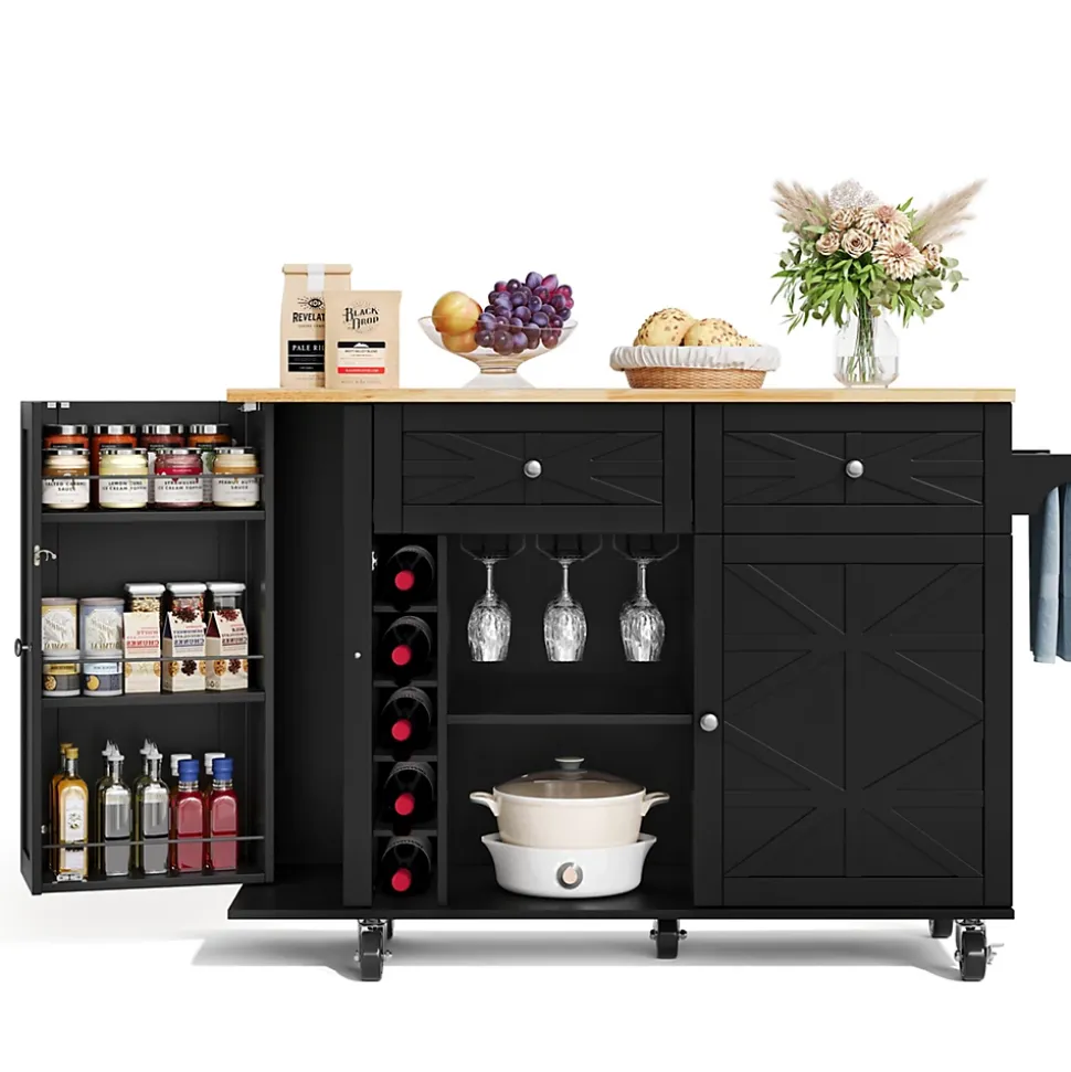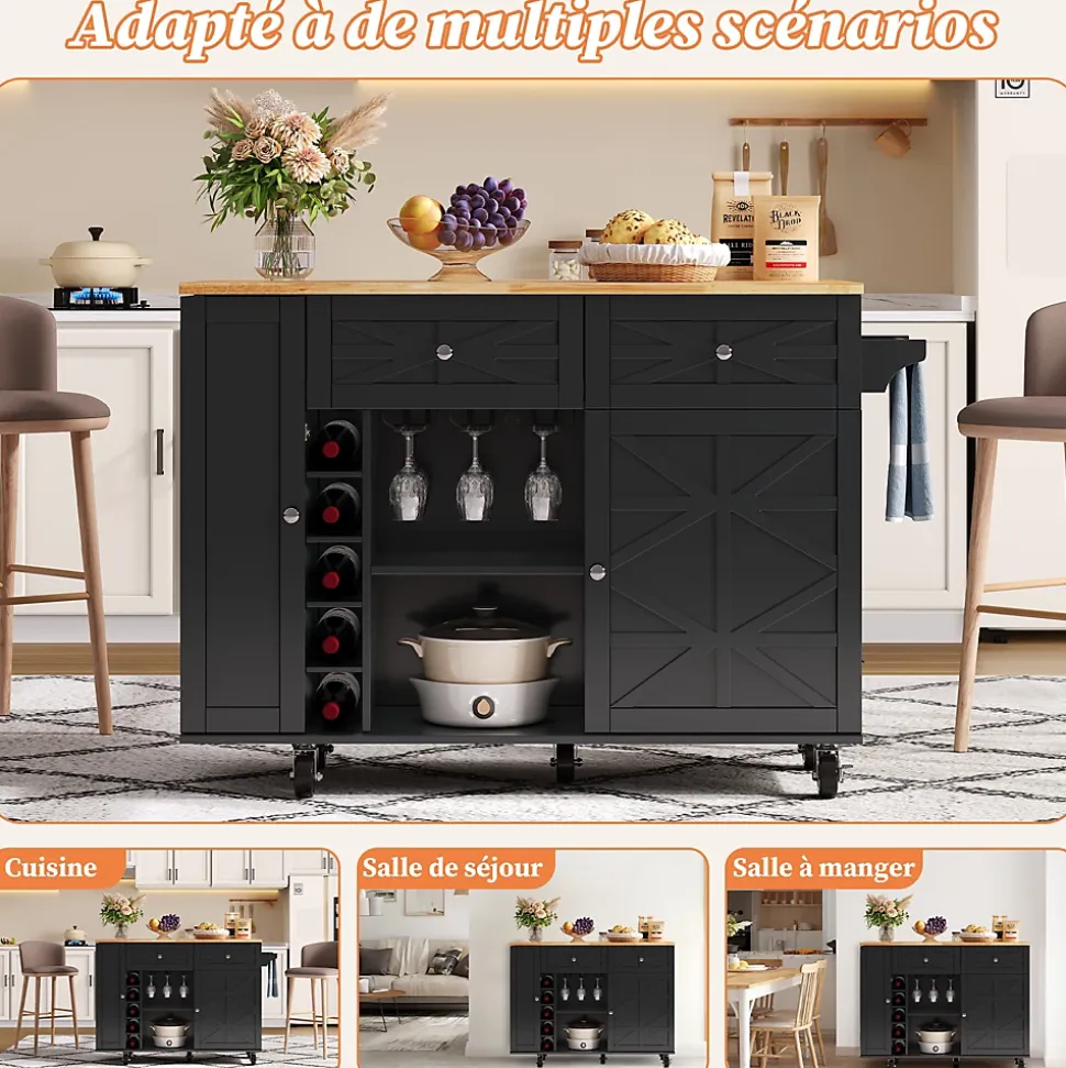 - 【Rangement polyvalent】 Doté de tiroirs, porte, casier à vin, support à serviettes et étagères réglables, ce meuble permet d’organiser ustensiles, accessoires et boissons tout en maintenant l’espace clair et fonctionnel.