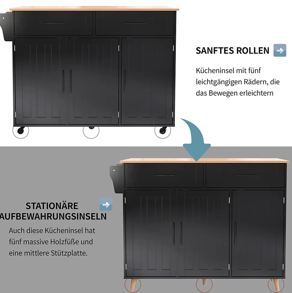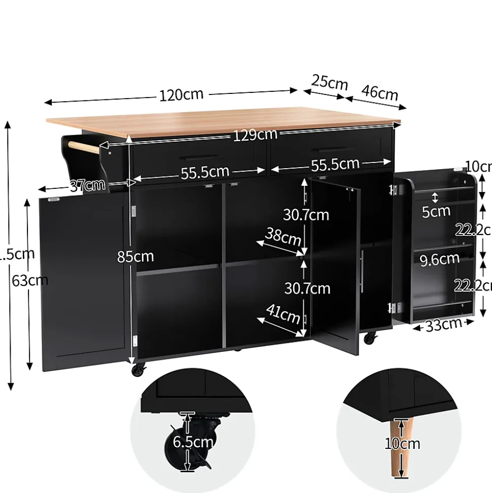 ▶ ▶ Détails ▶────────────────● Type de produit : Chariot de cuisine● Dimensions : 129×71×91.5 cm● Matériau : Panneau de particules● Couleur : Noir● Nombre de tiroirs : 2● Nombre de roulettes : 4● Nombre de pieds en bois massif : 5● Porte-serviettes : 1● Capacité de la tablette : 40 kg● Capacité de la tablette rabattable : 10 kg● Capacité du rayon : 20 kg● Capacité du tiroir : 10 kg● Nombre recommandé de personnes : 2● Temps de montage : 40-80 minutes● Nombre de colis : 2► Remarques ►※ Ce produit est livré en 2 colis. Ils peuvent ne pas arriver en même temps. Merci de patienter.※ En raison des mesures manuelles, une tolérance de 2-3 cm peut se produire.※ En raison des conditions d’éclairage, la couleur réelle peut différer légèrement de l’image du produit. Veuillez vous référer au produit reçu.※ Si vous avez des questions pendant l’installation, veuillez nous contacter dès que possible.