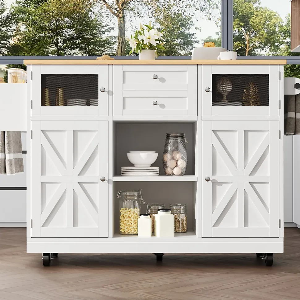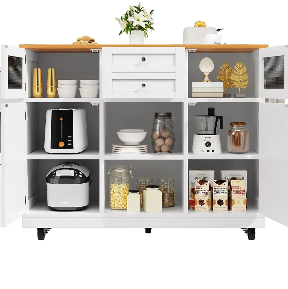 - 【Mobilité Flexible à 360°】 Grâce aux cinq roulettes à 360° (dont deux avec frein), ce chariot se déplace facilement d’une pièce à l’autre. Que ce soit dans la cuisine, la salle à manger ou tout autre espace, il est facile à manœuvrer selon vos besoins.
