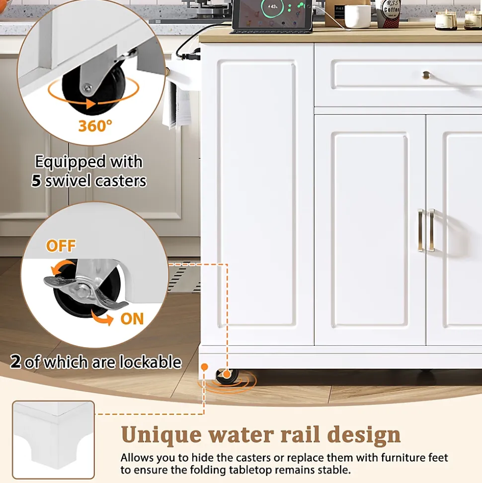 - 【Plan de Travail Extensible】 Tablette rabattable offrant un espace supplémentaire pour la préparation ou les snacks, intégrant prises électriques, USB et USB-C pour utiliser appareils de cuisine ou recharger vos gadgets facilement.