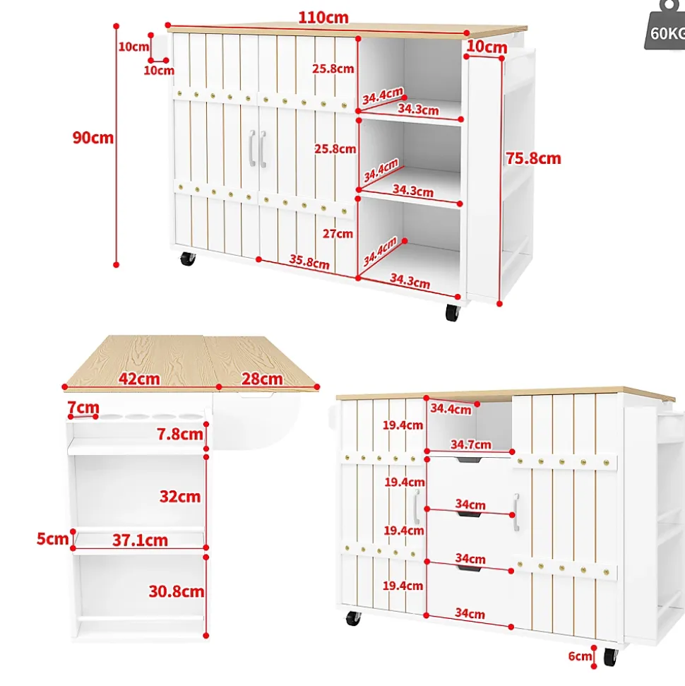 - 【Rangement optimisé】 Avec trois tiroirs, un étagère latérale et des planches ajustables, ce meuble offre une organisation pratique pour épices, couverts, boissons et petits ustensiles, facilitant l’accès rapide et l’ordre dans la cuisine.