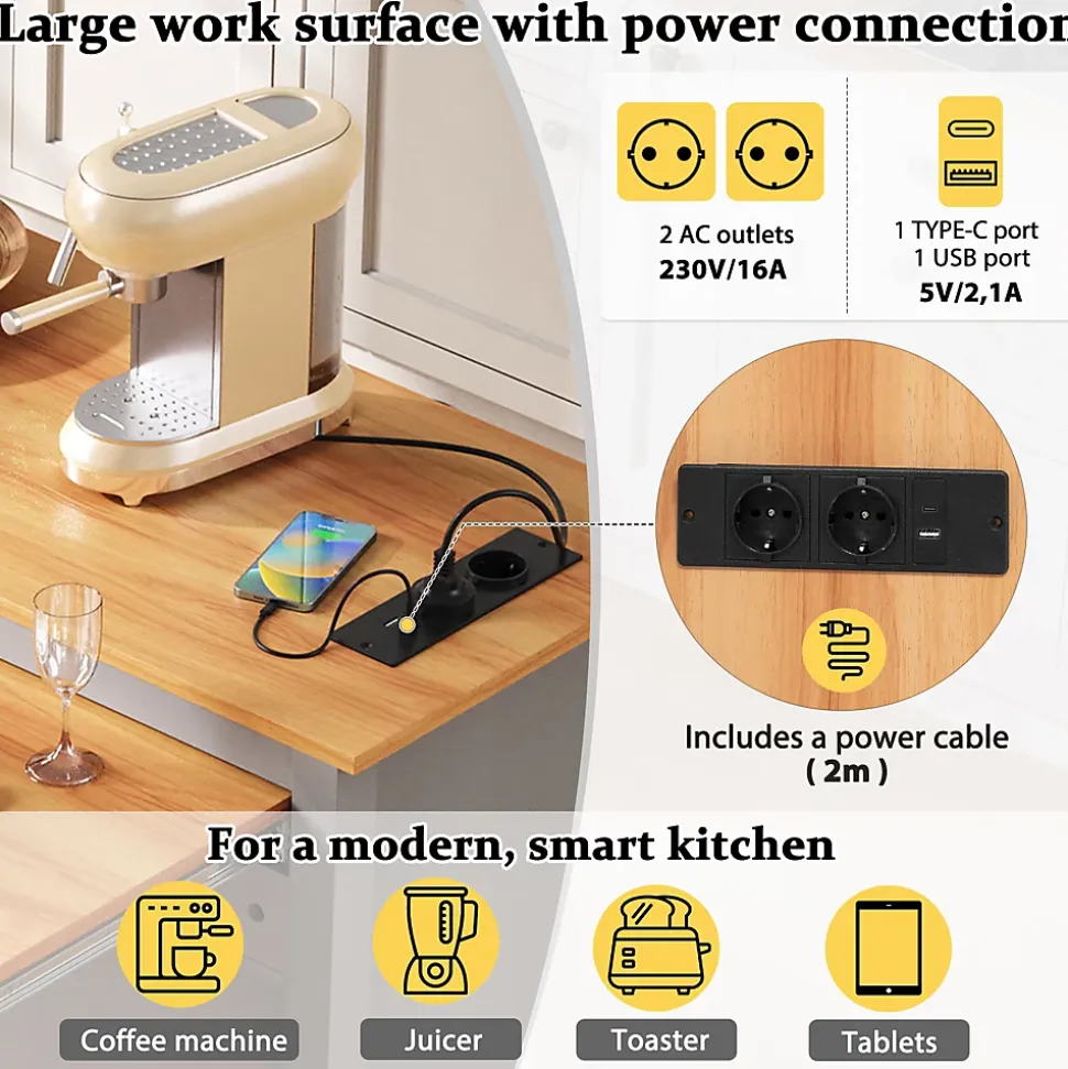 ▶ ▶ Détails ▶────────────────● Nom du produit : Îlot de cuisine sur roulettes● Couleur : Gris● Matériau : MDF● Dimensions du produit : 120 × 40-75 × 92 cm● Largeur maximale (étendue) : 75 cm● Poids : 52,7 kg● Capacité de la surface du plateau : 60 kg● Capacité de l’étagère/tiroir : 15 kg● Montage nécessaire : Oui, environ 2 heures● Nombre de colis : 2► Remarques ►※ Ce produit est livré en 2 colis.※ Poubelle : Veuillez noter que cet îlot de cuisine ne contient pas de poubelle.※ La couleur réelle du produit peut légèrement différer de l’image en raison de l’éclairage ou des paramètres de votre écran.※ En raison des mesures manuelles, une variation de 2-3 cm peut se produire.※ Toutes les images du produit ont été prises avec les produits réels.