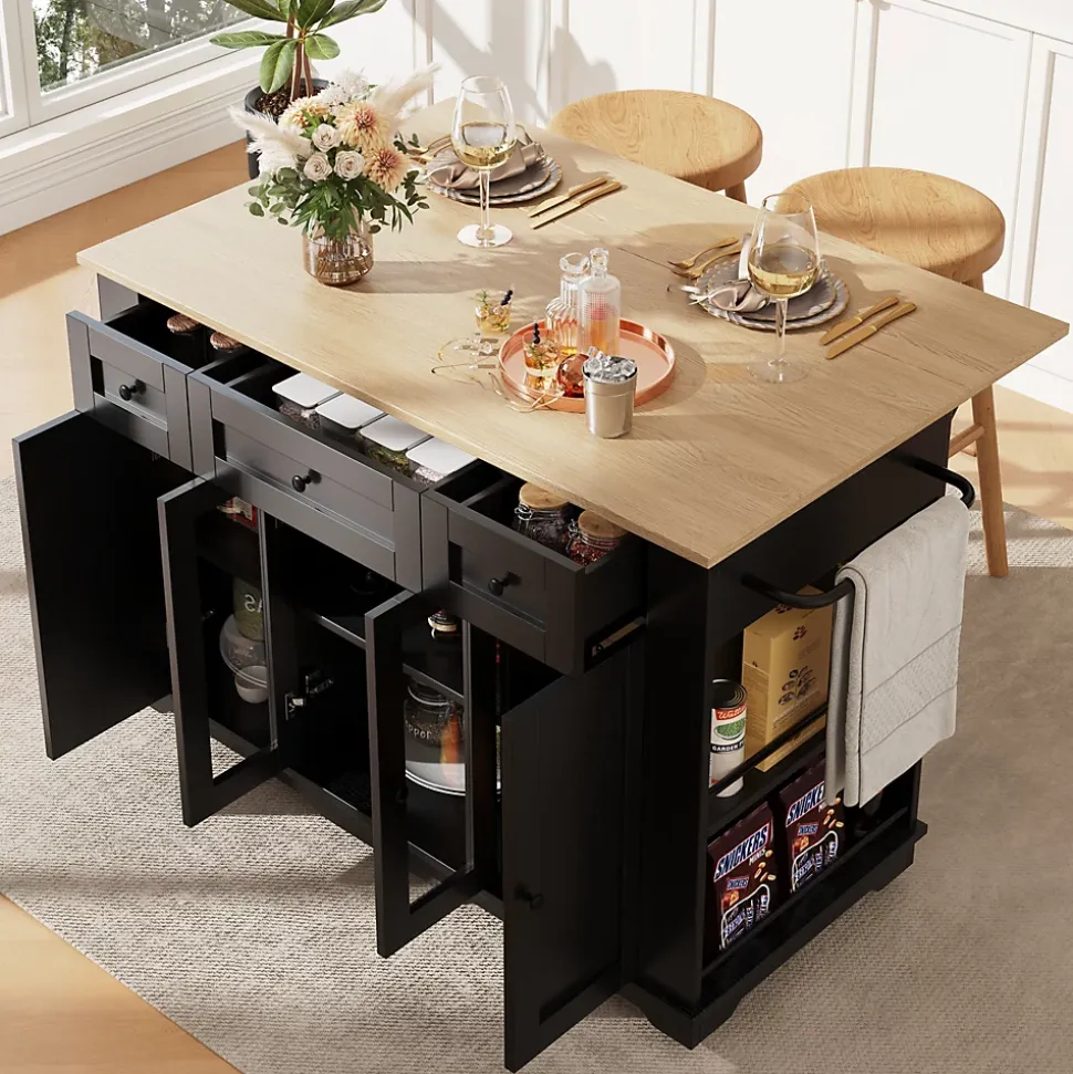 - 【Plan de travail spacieux】 La grande surface avec extension rabattable sert de plan de travail et se transforme en table pour les repas. Idéal pour cuisiner, découper et recevoir sans encombrer votre espace.