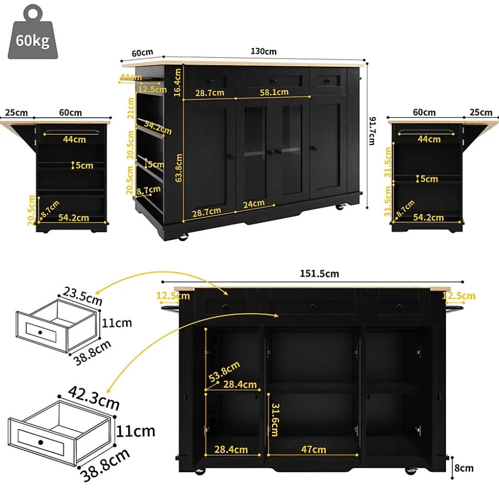 - 【Rangement organisé】 Les deux tiroirs et six compartiments permettent de classer assiettes, ustensiles et épices. Chaque élément a sa place, réduisant le désordre et rendant la cuisine plus fonctionnelle.