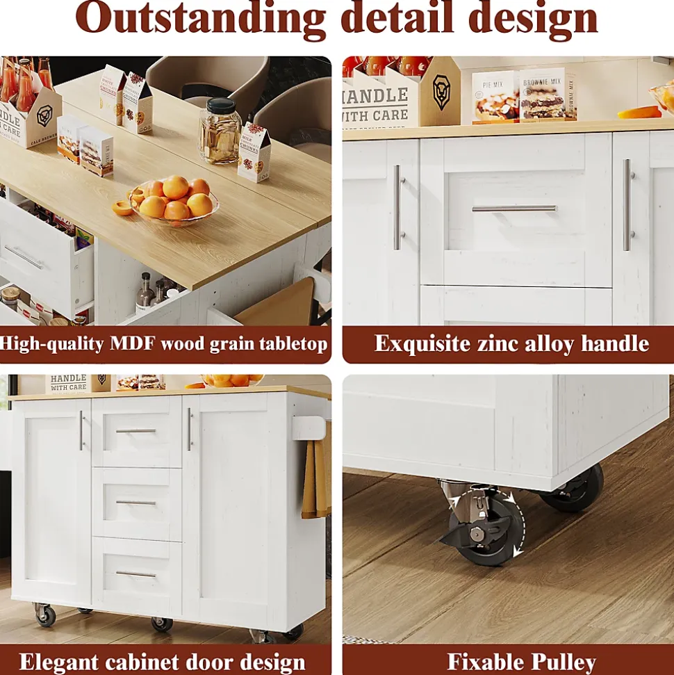 - 【Utilisation polyvalente】 Grâce à ses côtés rabattables, cette cuisine mobile se transforme facilement en îlot, plan de travail ou table d’appoint, idéale pour tirer parti de chaque centimètre dans les espaces restreints.