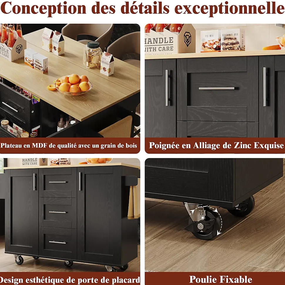 - 【Utilisation polyvalente】 Grâce à ses côtés rabattables, cette cuisine mobile se transforme facilement en îlot, plan de travail ou table d’appoint, idéale pour tirer parti de chaque centimètre dans les espaces restreints.