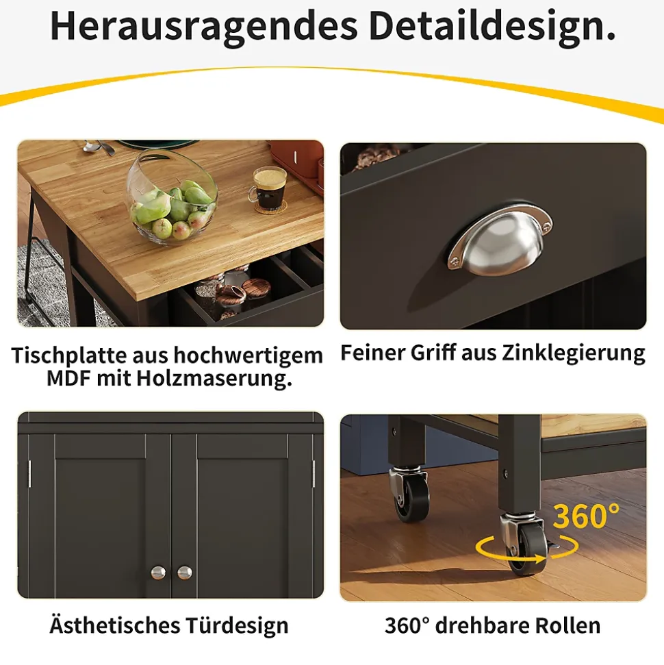 - 【Espace modulable】 Les deux panneaux latéraux rabattables permettent d’adapter facilement la surface selon vos besoins, créant un espace de travail ou de repas supplémentaire en un seul geste.