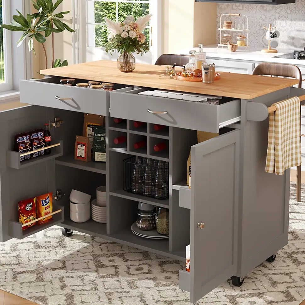 - 【Polyvalence d’utilisation】 Que ce soit comme îlot de cuisine, chariot de service ou solution de rangement, ce meuble combine fonctionnalité et style moderne, s’adaptant parfaitement à différents styles et usages au quotidien.