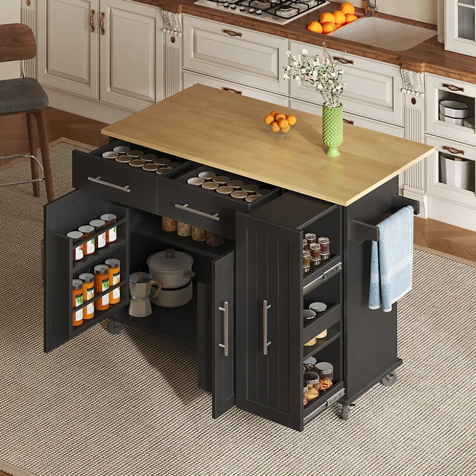- 【Extension du Plan de Travail】 La tablette rabattable transforme cette île de cuisine de 120 x 45 cm en un espace de travail généreux de 120 x 70 cm. Cette extension intelligente offre la surface parfaite pour déposer plusieurs plats, recevoir des convives ou travailler confortablement sans être à l’étroit.