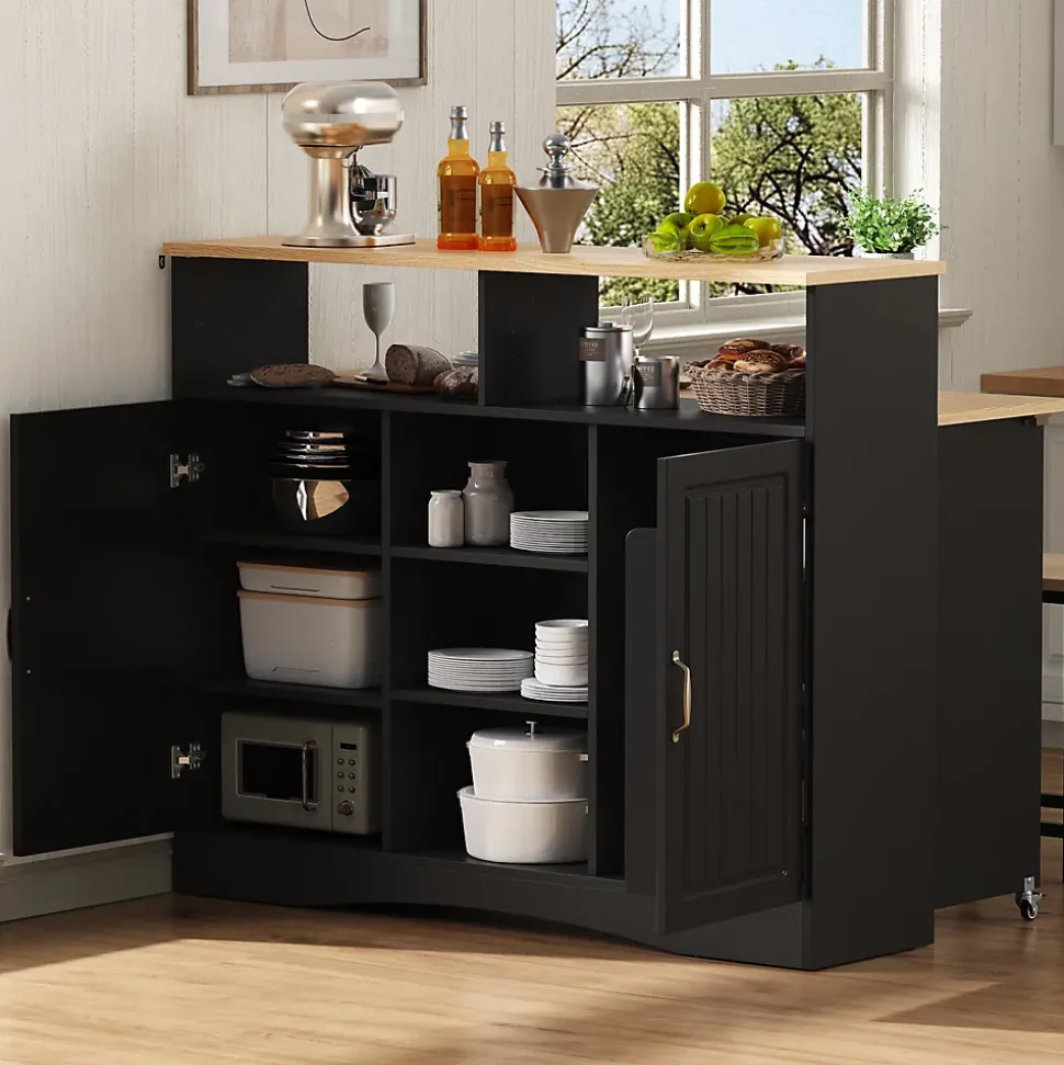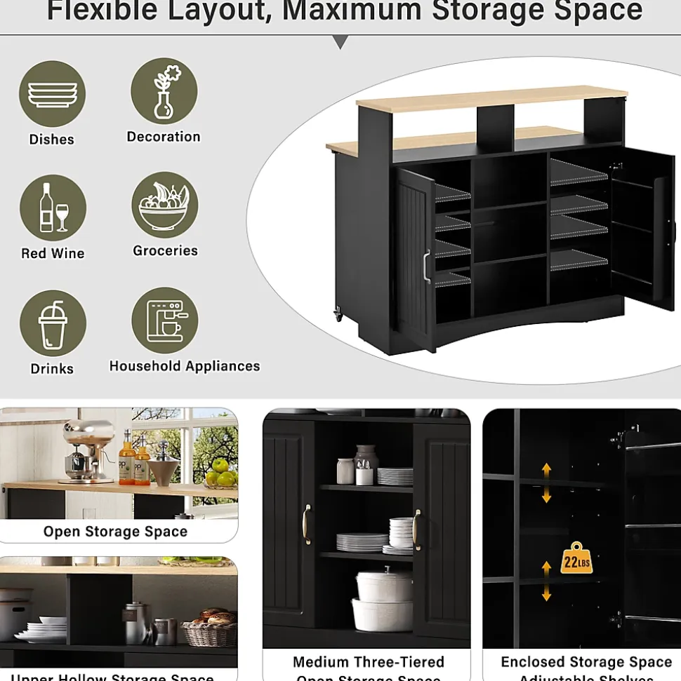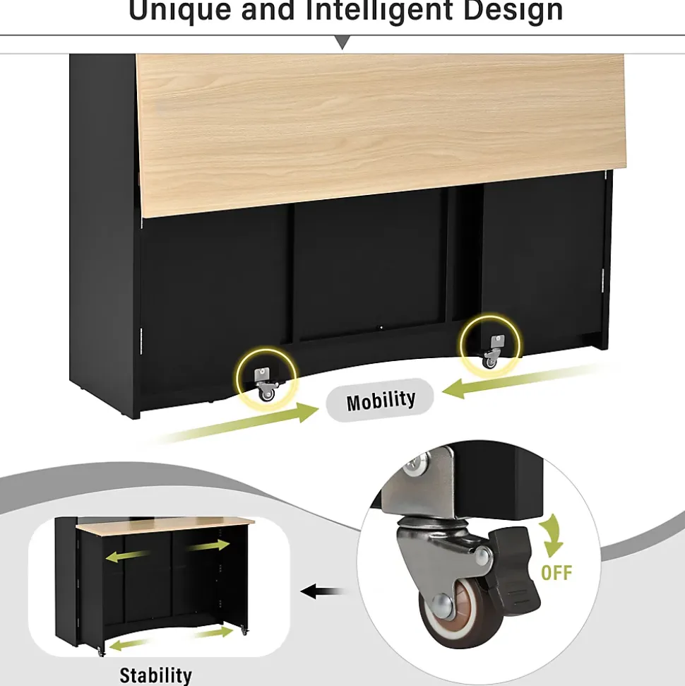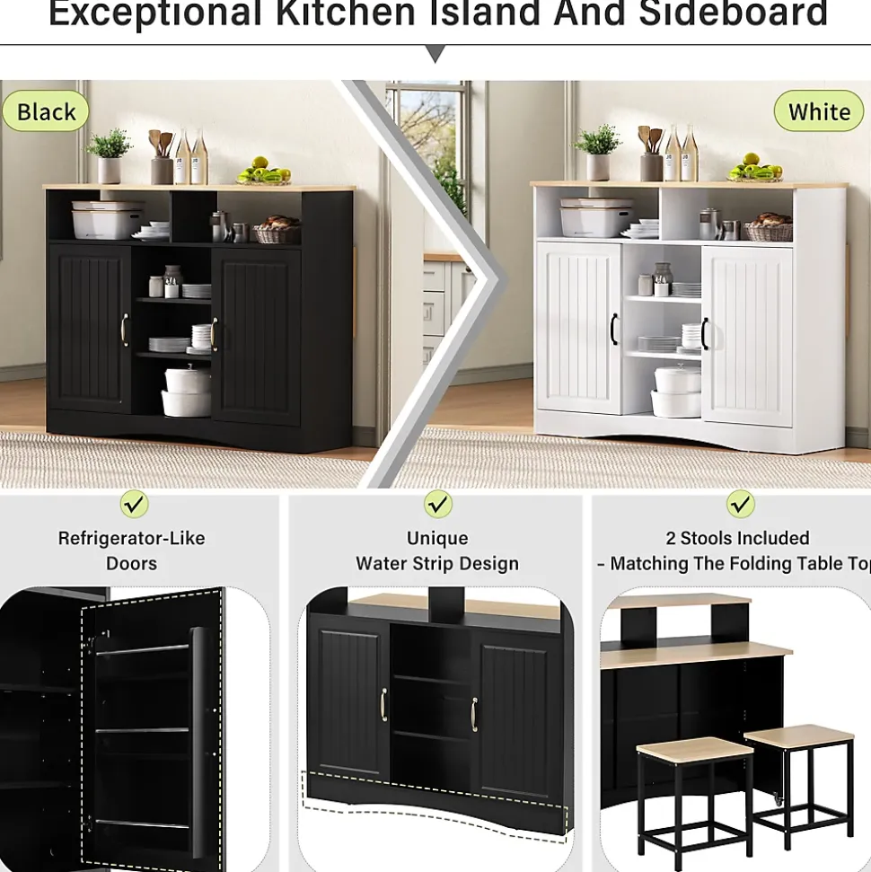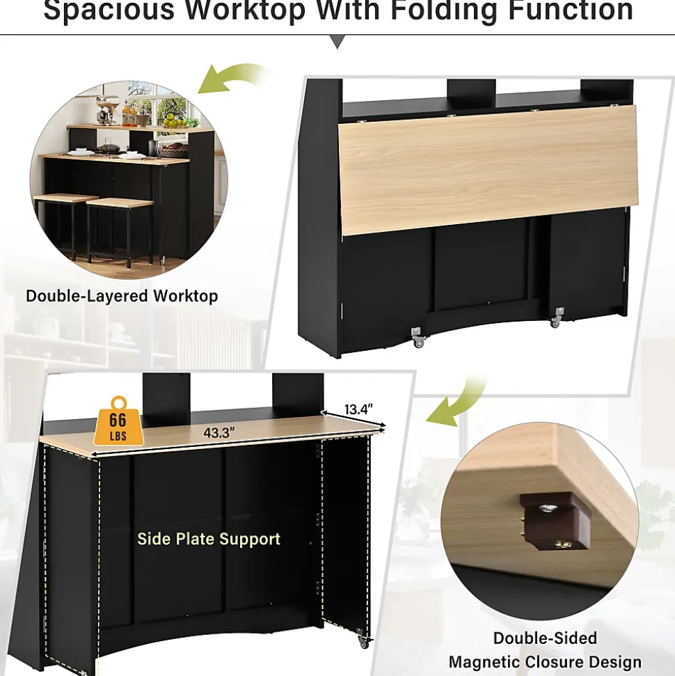 ▶ ▶ Détails ▶────────────────● Type de produit : Îlot de cuisine● Couleur : Noir● Matériau : MDF + PB● Dimensions totales : 110 × 34-68 × 97,5 cm● Poids du produit : 49 kg● Nombre de colis : 2● Pays d’origine : Chine● Assemblage requis : Oui, environ 1h● Capacité de charge : Plan de travail : 30 kg ; Étagère : 10 kg► Remarques ►※ Tous les outils nécessaires sont inclus.※ Nettoyer immédiatement les liquides renversés avec un chiffon propre. Pour les taches, utiliser un chiffon humide ou une éponge, essuyer l’excédent d’eau et laisser sécher à l’air.※ Vérifier régulièrement que toutes les fixations sont bien serrées.※ Ne pas trop serrer les éléments de fixation pour éviter déformations ou fissures.※ La couleur réelle du produit peut légèrement différer de l’image en raison de l’éclairage ou de l’écran.※ Les dimensions sont mesurées manuellement et peuvent varier légèrement.
