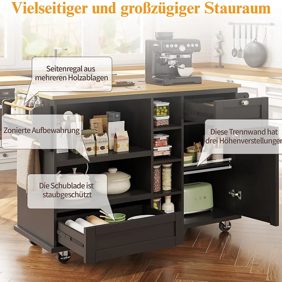 - 【Rangement multifonctionnel et organisé】 Avec tiroirs, portes et étagère ouverte, et trois séparateurs réglables, ce chariot permet de stocker efficacement vos ustensiles et accessoires, optimisant l’espace et facilitant l’accès rapide.