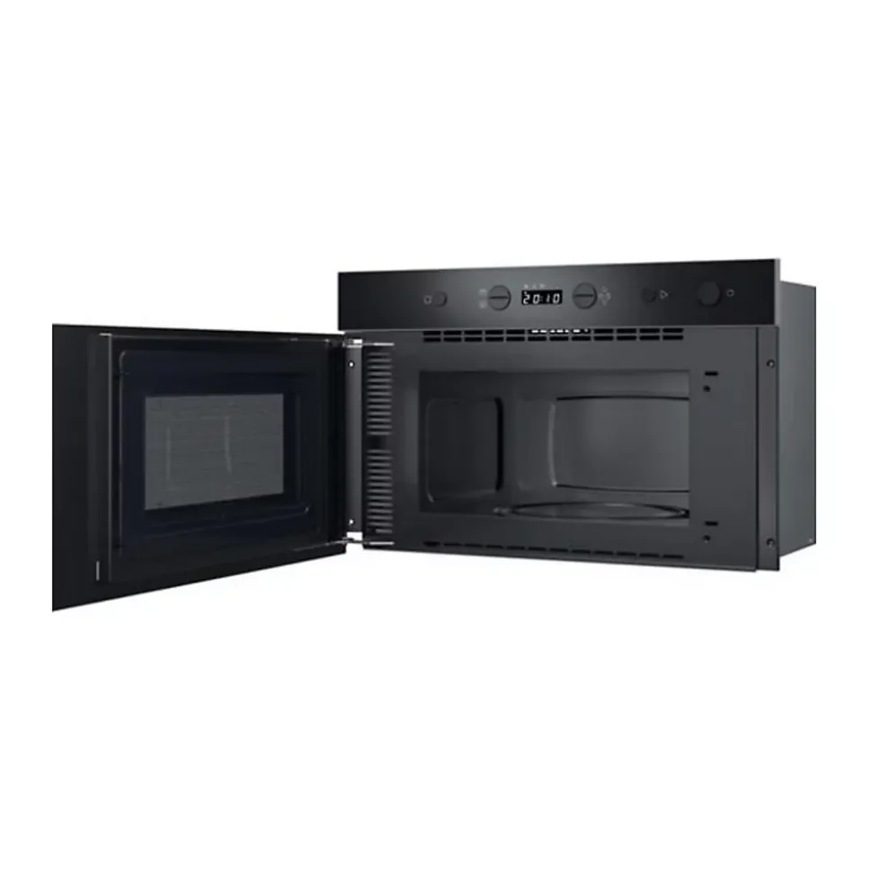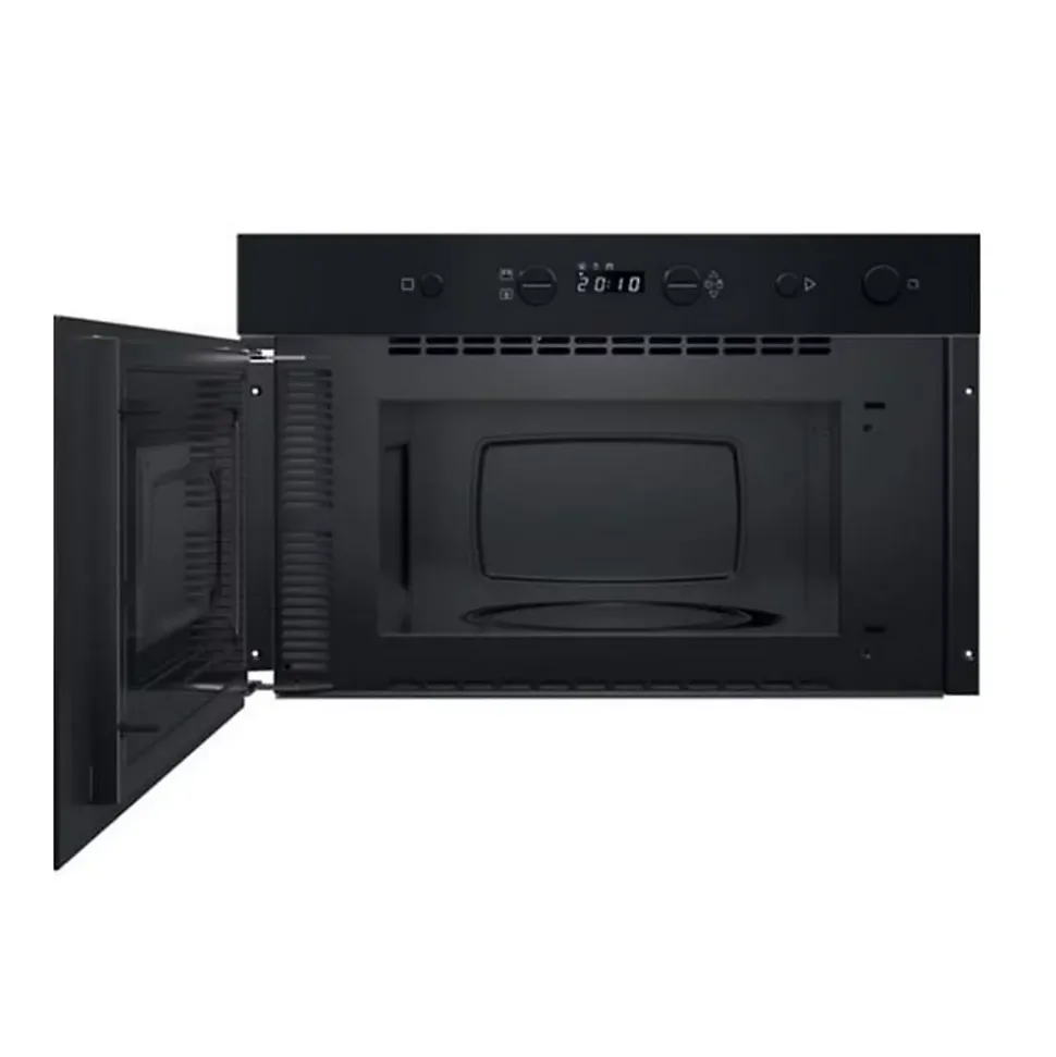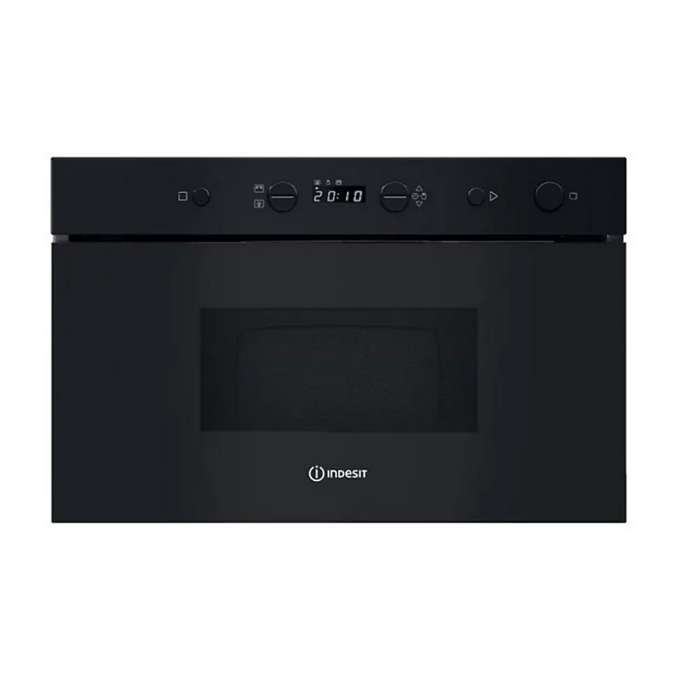 Micro-ondes solo encastrable INDESIT IMK11B – Compact et performant, ce modèle de 22 L s’intègre parfaitement à votre cuisine – Il propose 4 niveaux de puissance pour une cuisson adaptée à chaque plat – Son programmateur électronique, ses boutons intuitifs et son affichage LED blanc facilitent son utilisation – Profitez des fonctions Démarrage rapide et Décongélation rapide pour un gain de temps au quotidien – La diffusion des ondes en 3D assure une cuisson homogène et efficace – Son plateau tournant de 250 mm garantit une répartition optimale de la chaleur – Sécurité enfants intégrée pour une utilisation sereine – Éclairage intérieur pratique pour surveiller la cuisson – Porte latérale avec ouverture par bouton pour un accès simplifié – Finition verre noir – Niche d’encastrement : 360 x 556 x 300 mm.