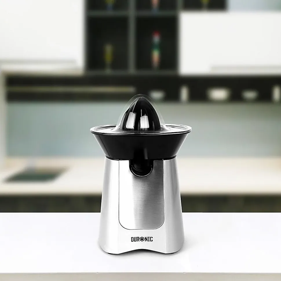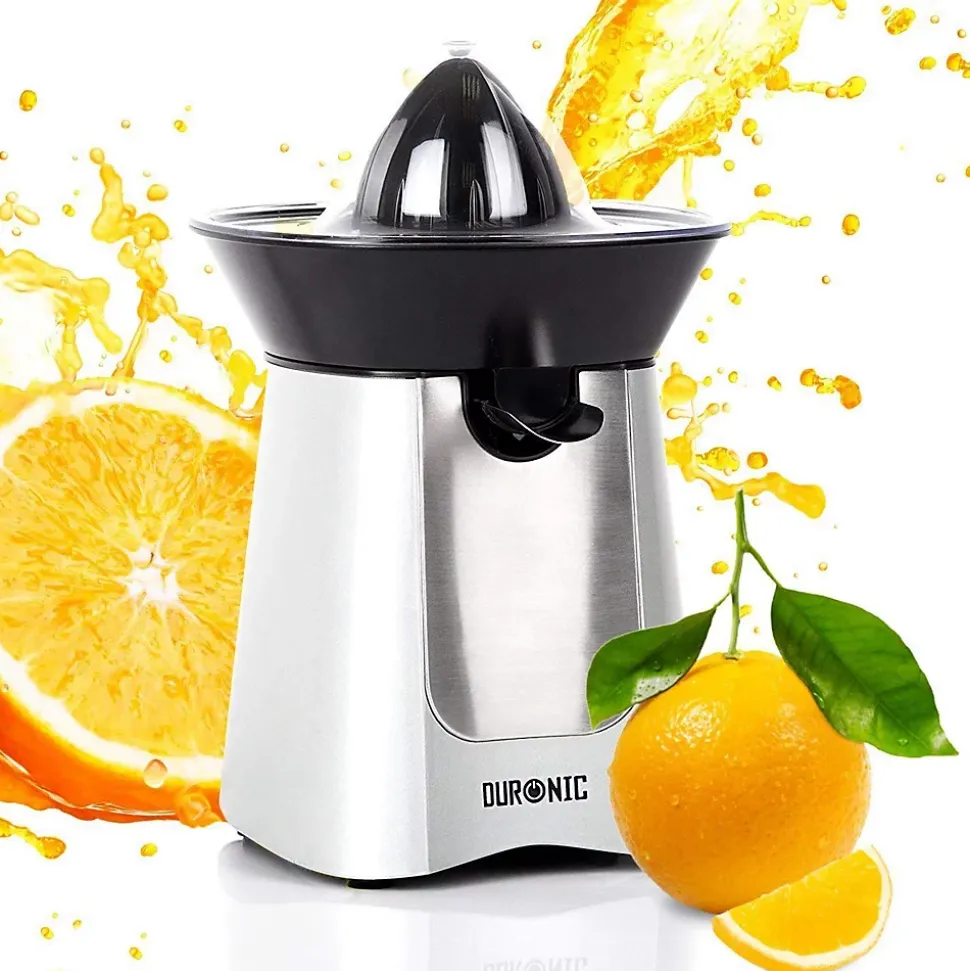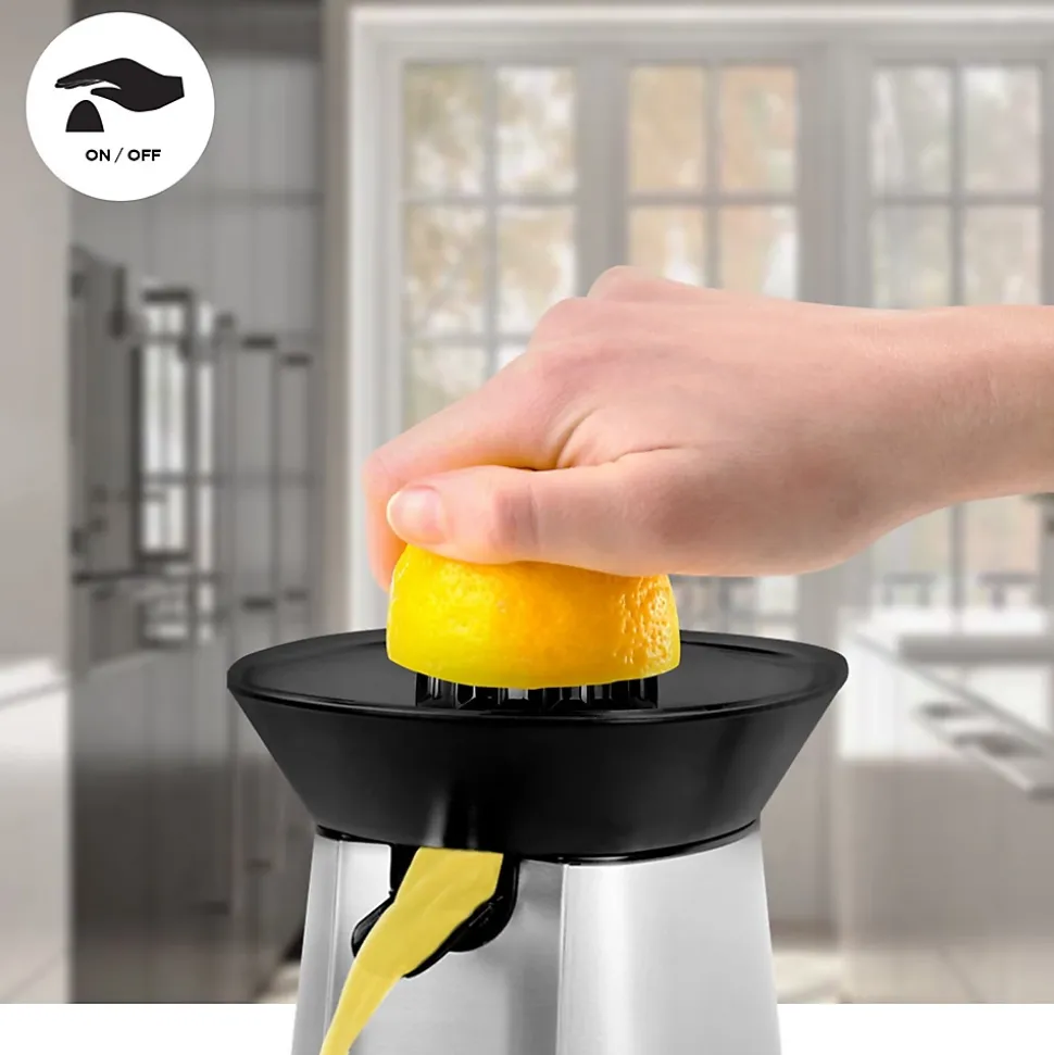 Un moteur puissant de 100W permet de garantir le bon fonctionnement du presse-agrume lors de son utilisation et de prolonger sa durée de vie. Doté d’un interrupteur intelligent, presser délicatement le fruit contre le cône permet d’enclencher le moteur et d’obtenir rapidement et efficacement son jus sans aucun effort. Le bec verseur repliable permet en outre de verser le contenu une fois la quantité souhaitée est pressée et éviter de laisser l’appareil goûter une fois le jus versé.Son tamis récupère la pulpe que vous pouvez au choix décider de jeter ou d’ajouter à moindres mesures dans le jus en fonction des préférences de chacun. La pulpe peut également être utilisée pour en faire des gâteaux ou même des plats. Après utilisation, les différents éléments sont démontables simplement pour un nettoyage aisé et rapide. Le câble d’alimentation s’enroule soigneusement sous l’unité tandis qu’un couvercle est également fourni pour éviter tout dépôt de poussières sur les cônes.Cet appareil est fourni avec deux cônes interchangeables noirs de tailles différentes pour convenir aux agrumes de toutes tailles. Cette variété de fruit est reconnaissable par sa peau dure et non comestible et a pour particularités d’être faible en calories, riche en vitamines C / B1 / B9, minéraux (calcium, magnésium, potassium) et propriétés antioxydantes tout étant bénéfiques pour le cholestérol comme la détoxication du foie et désintoxication du système.Relativement méconnues, de nombreuses autres variétés d’agrumes aux goûts innovants et disponibles en toute saison, permettent également d’être utilisées avec un presse-agrume. Variez les plaisirs en goûtant aux bienfaits des jus d’agrumes extraits de Bergamote, Bigaradier, Calamondin, Cédrat, Citron vert, Chami, Clémentine, Combava, Kumquat, Lime, Limette, Mandarine, Moro, Orange sanguine, Pamplemousse, Pomelo, Sudachi, Tangelo, Tangerine, Yuzu, etc. »