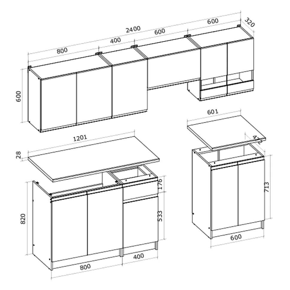 Caractéristiques de la Katarina LUX 2,4 m, ensemble de meubles de cuisine à assembler, blanc et chêne (KSETKATARINAO) :La cuisine contient :Meuble bas 60 cmMeuble bas avec tiroir 40 cmMeuble évier inférieur 80 cmArmoire murale 80 cm (hauteur 60 cm)Armoire supérieure vitrée 80 cm (hauteur 60 cm)Armoire murale 40 cm (hauteur 60 cm)Armoire murale 60 cm (hauteur 36 cm)Plan de travail 120 cm + 60 cmLargeur de la cuisine : 2,4 mCorps – DTD 16mm, Chêne Sonoma 3025MXPorte – DTD 18 mm, White Diamond 8681 SUPlan de travail – 28 mm, blancPoignée – fraisée en forme de JCharnières – 110° sans amortissementDébattements – blanc, sans amortissementInstallation facileFournie sans appareils électroménagers, ni évier ni robinet