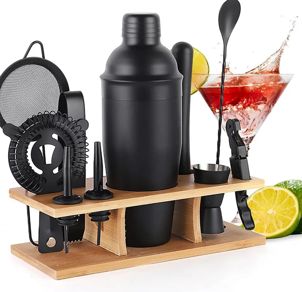 Préparez vos cocktails préférés avec ce kit barman mixology complet de 11 pièces comprenant un shaker de 19 oz, un godet 0,5/1 oz, une cuillère mélangeuse, un pilon, une pince à glace, un tamis, un tire-bouchon, 2 becs verseurs et un présentoir en bambou. Fabriqué en acier inoxydable de qualité alimentaire, ce set est durable, anti-fuite, facile à nettoyer et compatible lave-vaisselle. Le support en bambou permet de ranger et d’exposer élégamment vos outils, pratique pour une utilisation quotidienne ou pour impressionner vos invités. Parfait pour débutants comme professionnels, il permet de réaliser une grande variété de cocktails comme mojito, whisky, rhum, gin, margarita et tequila. Idéal comme cadeau pour les pères, maris ou amateurs de cocktails pour anniversaires, fêtes des pères, Noël ou pendaisons de crémaillère.