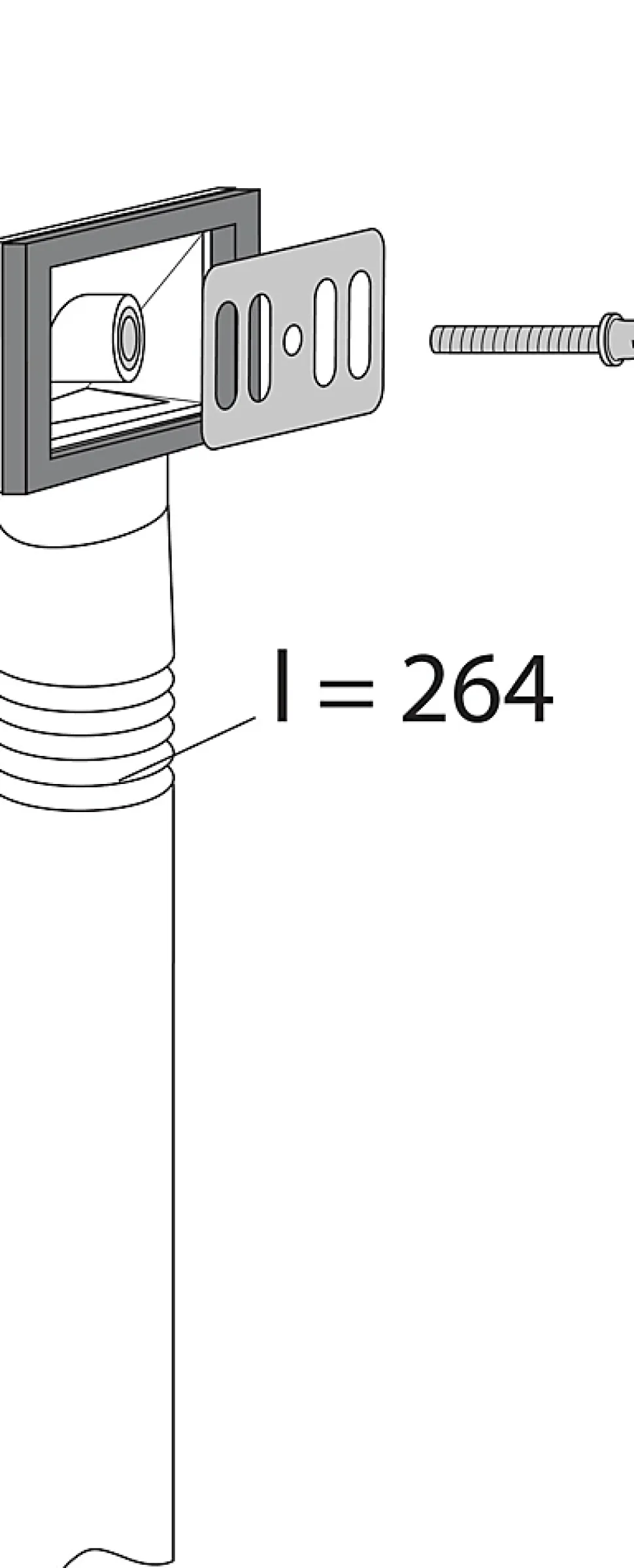 - Tube flexible annelé en polypropylène de 264 mm avec sortie lisse pour raccordement.
