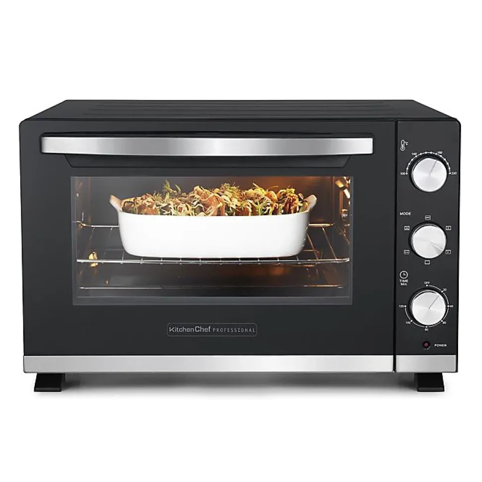 Four multifonction chaleur tournante 30l four multifonction d’une capacité de 30 litresfonctions: convection par chaleur tournante, rôtissoire, grill et panier métallique pour cuisson des frites , nuggets, ailerons de poulets … -kc-four30