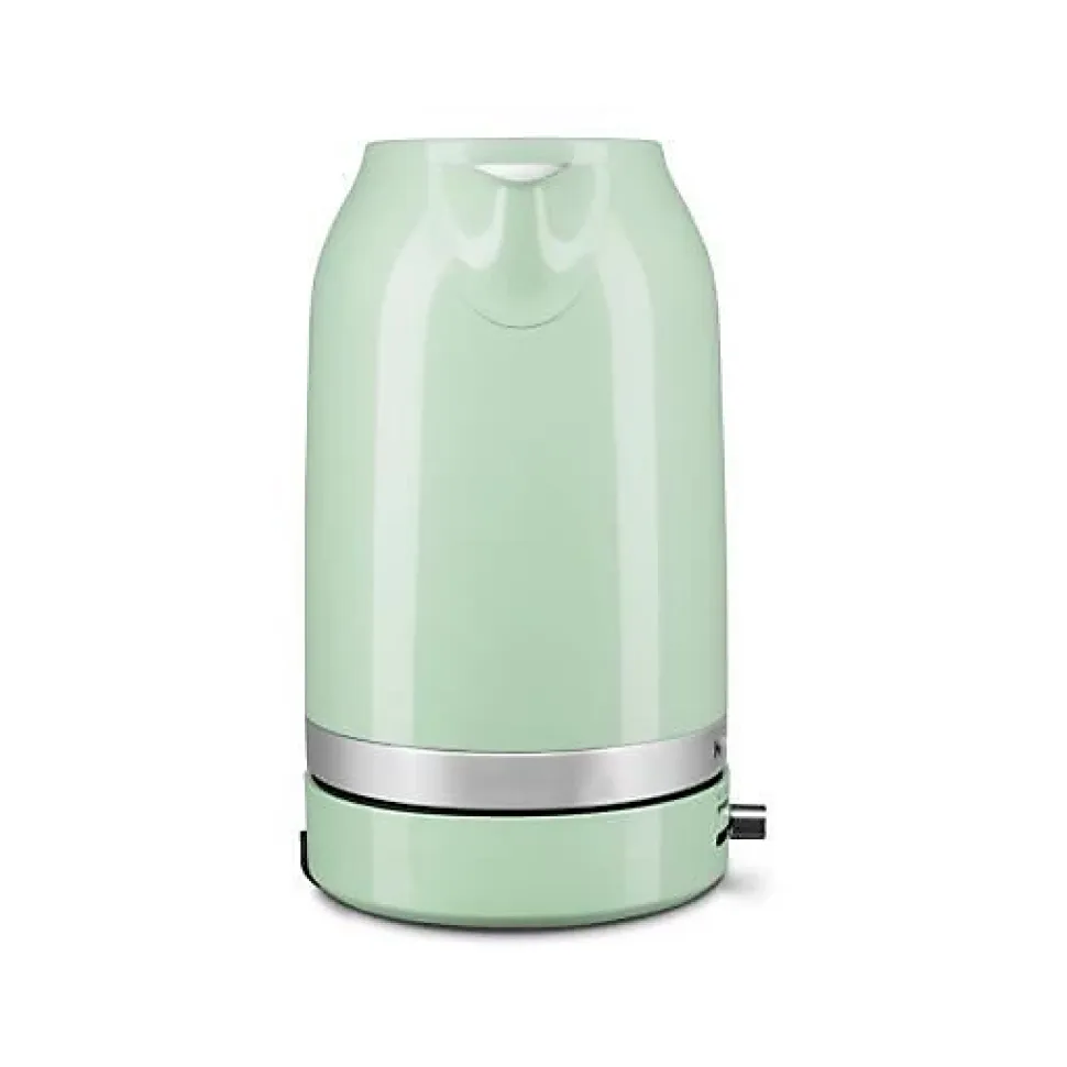 La bouilloire KITCHENAID 5KEK1701EPT est un modèle élégant et fonctionnel, avec une capacité de 1,7 litre et une puissance de 2400 W. Elle offre un contrôle variable de température de 50 à 100°C par paliers de 10°C, une sécurité anti-chauffe à sec, et un design ergonomique avec base à rotation 360° et filtre anticalcaire amovible. Parfaite pour les amateurs de thé et café cherchant efficacité et style.