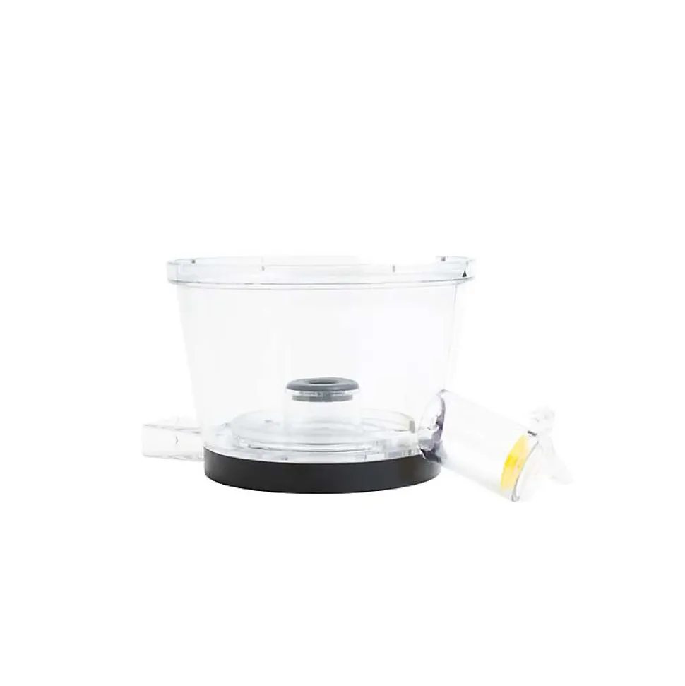 - 2 sorties : Une sortie plus large pour collecter le jus et une seconde sortie pour collecter la pulpe. Il est fourni avec 2 récipients dont un filtre amovible en acier inoxydable et plastique pour collecter le jus et la pulpe simultanément afin d’obtenir un jus homogène, limpide et sans résidus