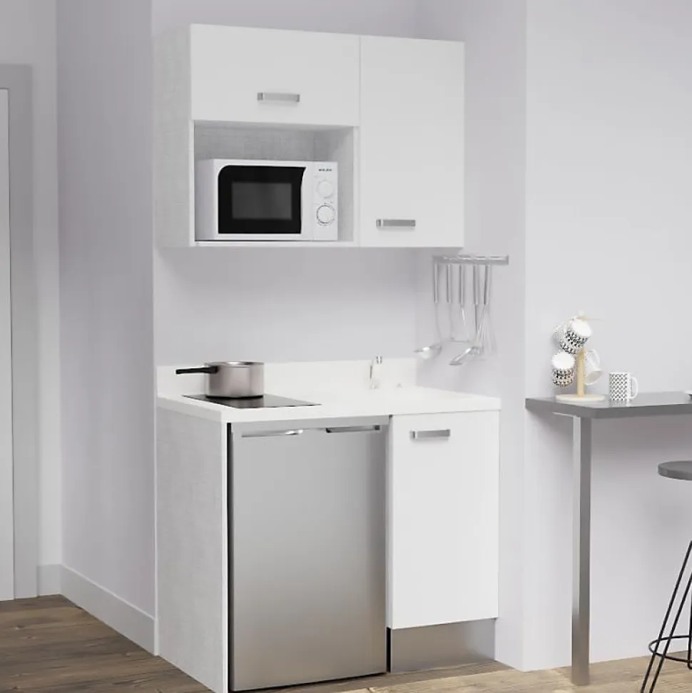 Kitchenette K00 – 100 cm – façades Blanc – Plan monobloc en quartz coloris Snova évier à droite