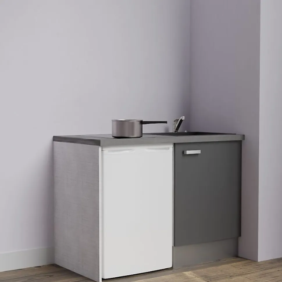 Kitchenette K08 - 120 cm - Façades : Gris - Plan de travail : Gris béton - Crédences : Non - Evier Noir