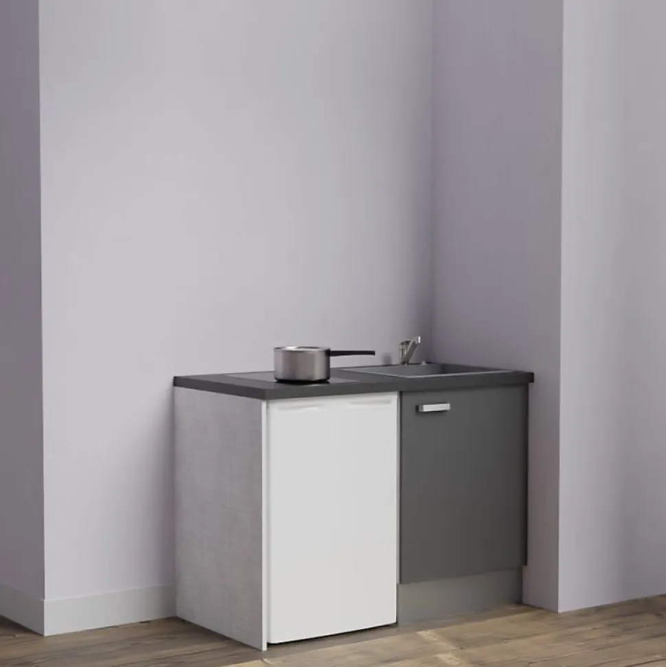 Kitchenette K08 - 120 cm - Façades : Gris - Plan de travail : Noir texturé - Crédences : Non - Evier Gris