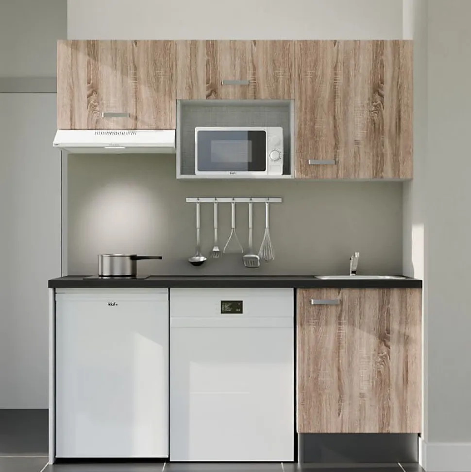 Kitchenette K55 - 180 cm - Façades : Bois - Plan de travail : Noir - Crédences : Non - Evier