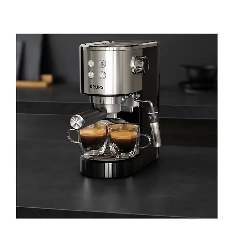 Avec Virtuoso + de KRUPS, découvrez votre nouvel allié pour préparer vos espressos et boissons lactées comme un vrai barista. Cette cafetière expresso manuelle élégante et compacte présente une interface hautement intuitive avec quatre boutons simples d’utilisation, ainsi qu’une fonction d’arrêt automatique pour une expérience de barista à domicile des plus aisées. Cette machine expresso facile à
