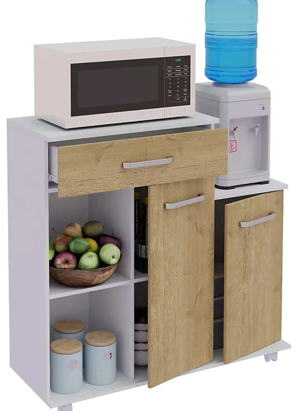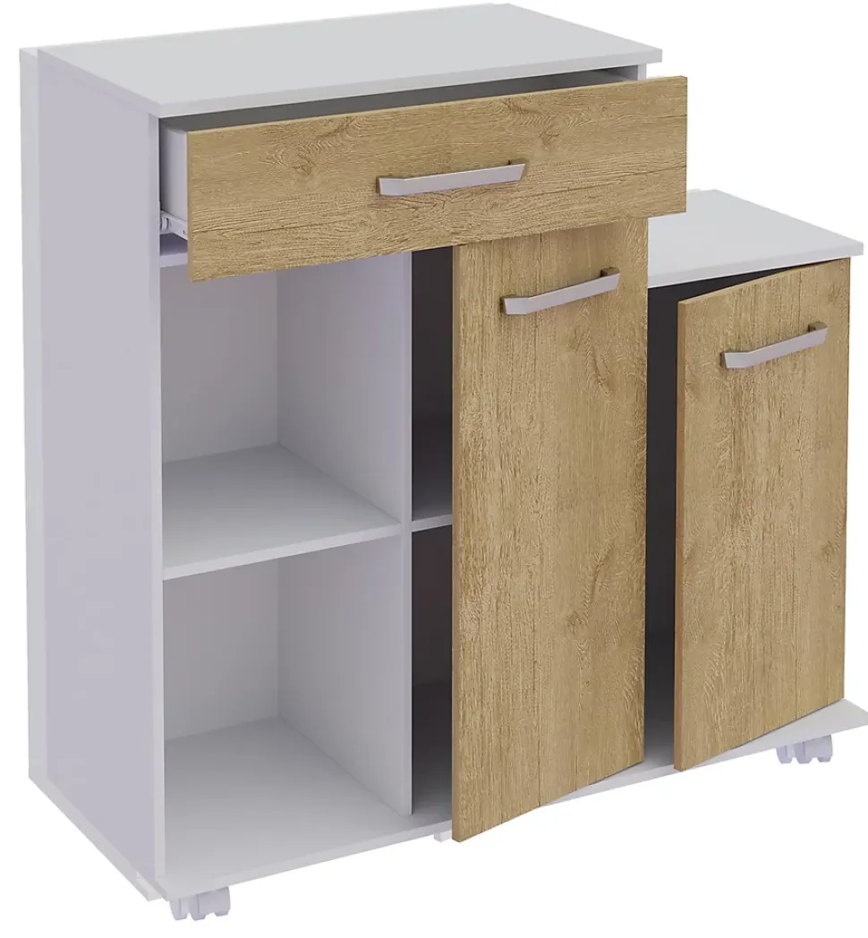 Points forts:- un tiroir et deux portes tournantes pour un espace de rangement suffisamment dissimulé- Deux compartiments ouverts pour un accès rapide- Dimensions env. H. 88 x W. 90 x D. 33 cmChariot de cuisine pratique et spacieux pour un espace de rangement supplémentaire dans la cuisine. Trois tiroirs et trois compartiments ouverts font du chariot de service mobile une merveille d’espace de rangement. La surface revêtue rend cette armoire particulièrement facile à entretenir et insensible à l’humidité. Depuis les années 1970, VCM se spécialise dans la conception, la production et la distribution de meubles avec un juste rapport prix/performance et a déjà magnifié des millions de ménages.
