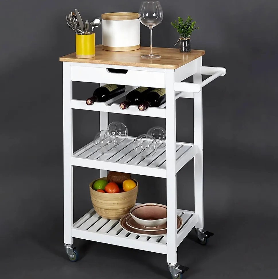 - Desserte à Roulettes Blanche avec Porte-Bouteilles Kwit. Votre nouvelle alliée pour vous assister en cuisine !
