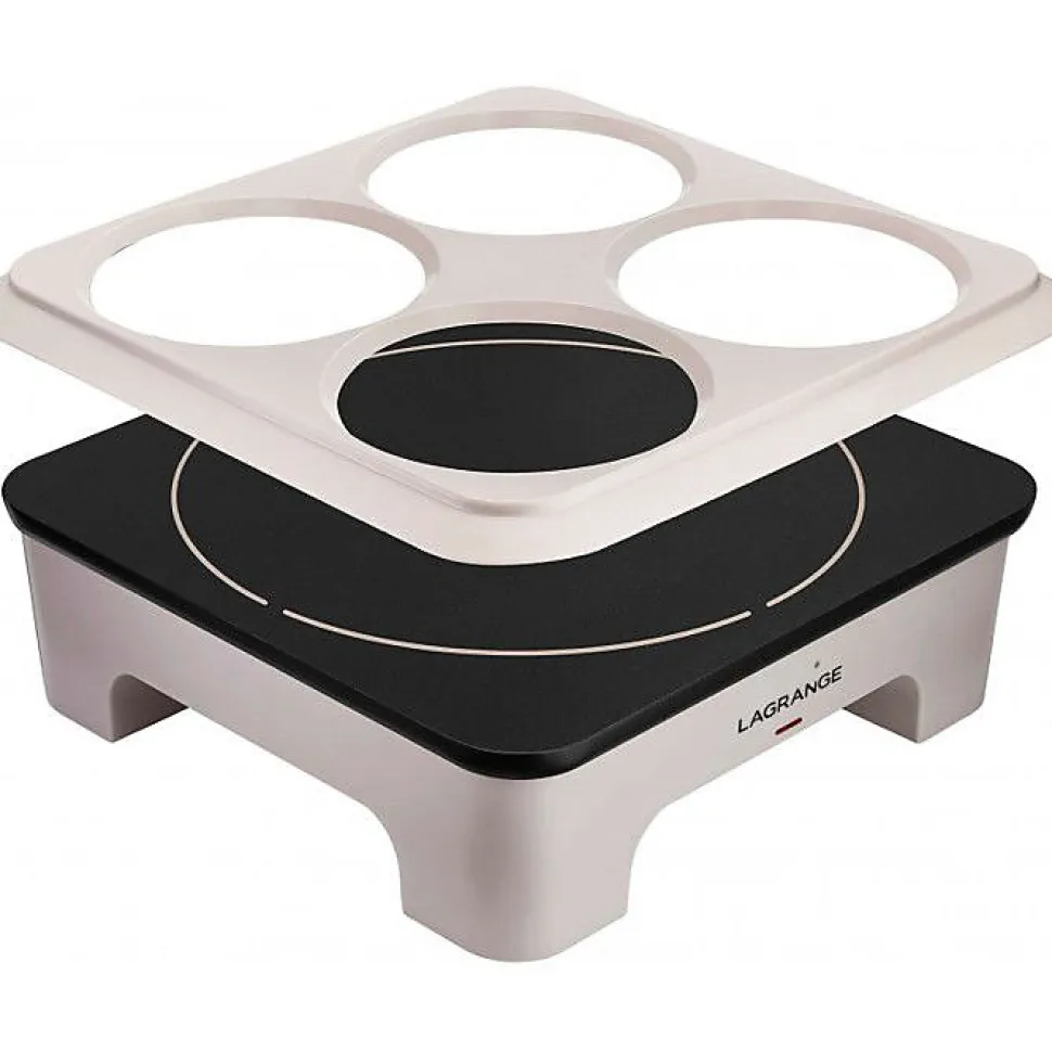 Crêpière 2000w + 1 pochoir crêpière créativ’ duo lagrange 139001 pour réaliser une grande crêpe ou 4 mini-crêpes. Multifonction : un marquage de grande crêpe diamètre 28 cm et un pochoir en silicone de 4 mini-crêpes diamètre 13 cm. -139001