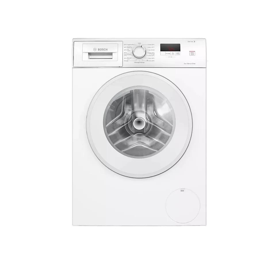 Lave-linge frontal 7kg 1400 tours/min Bosch – Ce lave-linge WGE02406FR de Bosch offre une capacité de 7 kilos pour un essorage de 1400 tours/minute. Il possède la fonction ActiveWaterPlus qui adapte la consommation d’eau, même aux petites charges, grâce à la détection automatique de charge.Choisissez parmi ses nombreux programmes celui qui est le mieux adapté aux textiles que vous souhaitez laver. Vous pouvez utiliser la fonction rajout de linge pour ajouter du linge ou en enlever en cours de cycle. Vous avez notamment le choix entre Coton 20°C/ 40°C/60°C ou 90°C, Express15/30 minutes, Délicat/soir ou lain/lavage à la main, etc.Grâce à la technologie Speed Perfect, votre linge est parfaitement propre avec des cycles jusqu’à 65 % moins longs.Pour optimiser votre organisation, l’écran LED vous indique le déroulement du cycle, la vitesse d’essorage, le temps restant, la fin différée 24 heures et recommandation de chargeLe moteur Eco Silence Drive combiné avec les parois anti vibration font de cet appareil une machine à laver silencieuse. – Type de produit : Lave-linge.Type d’installation : Pose libre.Gamme : Série 2.Capacité maximale en kg : 7,0 kg.Vitesse d’essorage : 1400-400 tr/min.Consommation d’eau en litres par cycle : 44 L .Classe d’efficacité énergétique : A.Classe d’émissions de bruit acoustique dans l’air : A.Classe d’efficacité d’essorage : B.Émissions de bruit acoustique dans l’air : 72 dB(A).Consommation énergétique en kWh pour 100 cycles : 40 kWh.Puissance de raccordement : 2300 W.Durée du programme Eco : 2:55 h.Intensité : 10 A.Tension : 220-240 V.Fréquence: 50 Hz.Programmes: Coton 20°C, Coton 40°C, Coton 60°C, Coton 90°C, Synthétiques 30°C, Synthétiques 40°C, Essorage/ Vidange, Mix rapide, Express 15/30 min, Délicat/Soie, Laine/ Lavage main.EcoSilence Drive : moteur induction alliant longévité.Hauteur avec top : -2 mm.Longueur du