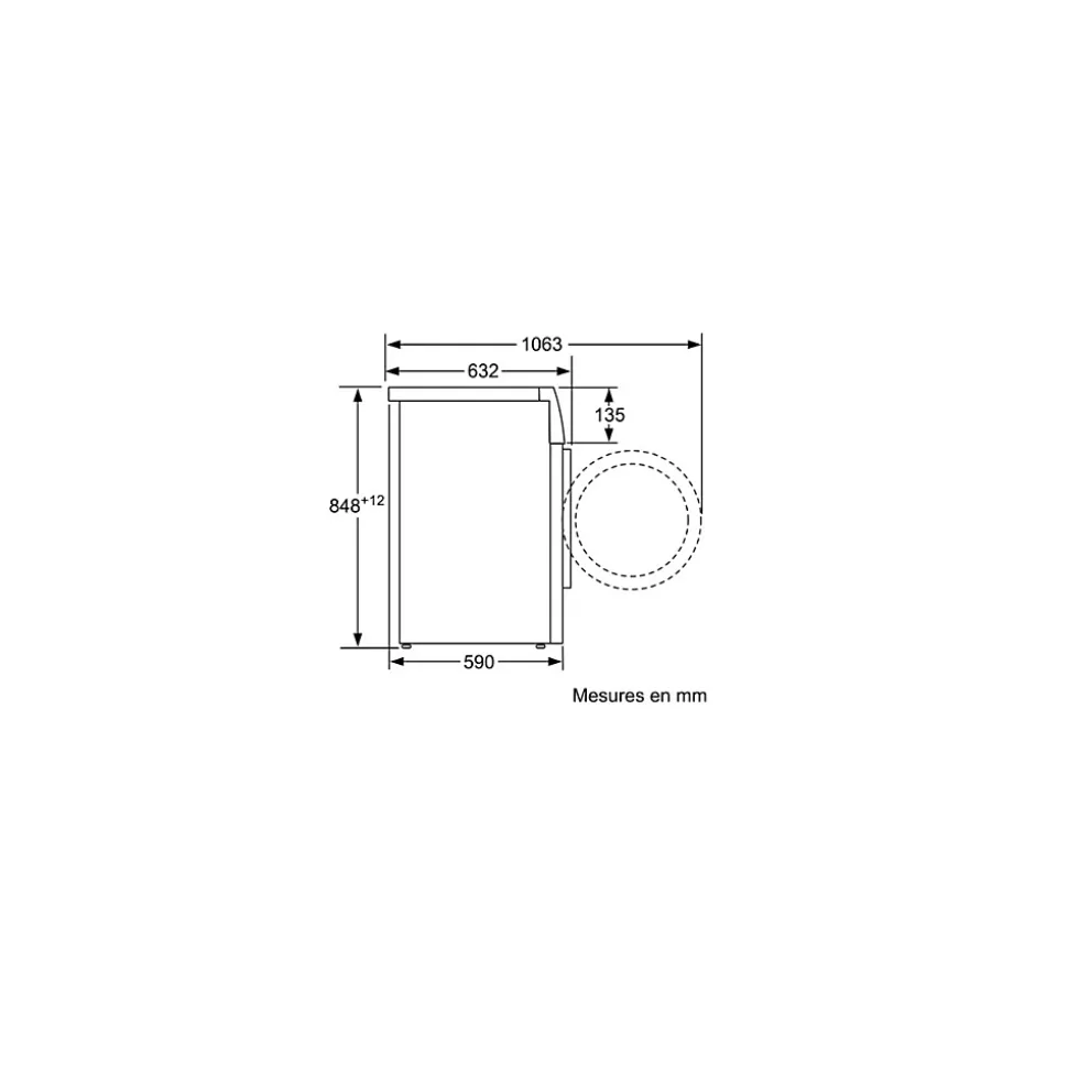 - Hublot 32 cm avec ouverture à 160° facilitant le chargement et déchargement du linge.