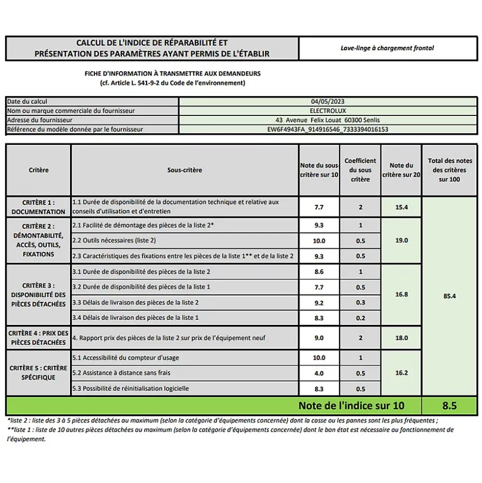 - Indice de réparabilité de 8,5/10 avec disponibilité des pièces sur 15 ans