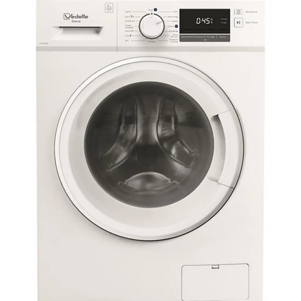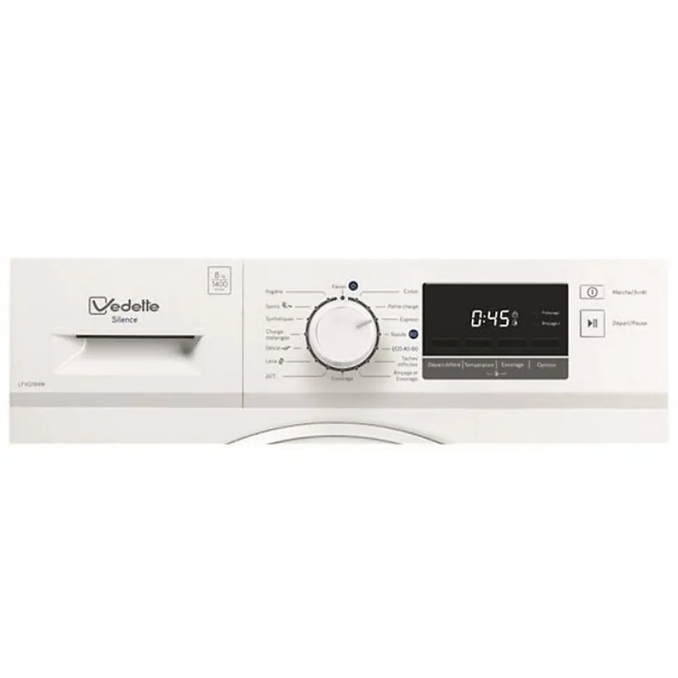 VEDETTE – LFVQ184W-01 – Lave-linge hublotCe lave-linge hublot VEDETTE, modèle LFVQ184W-01, est un appareil pratique et performant pour faciliter votre quotidien. Avec sa capacité de lavage de 8 kg, vous pourrez laver une grande quantité de linge en une seule fois, ce qui est idéal pour les familles nombreuses. De plus, sa vitesse d’essorage maximale de 1400 tr/min permet un séchage efficace, réduisant ainsi le temps de séchage de votre linge. Grâce à son niveau sonore de 76 dba, cet appareil fonctionne de manière discrète, pour un confort optimal au quotidien. – Type de produit : lave-linge hublot- Marque d’électroménager : VEDETTE- Modèle : LFVQ184W-01- Type de chargement : hublot- Type de pose : pose libre- Type de facette : lave-linge- Classe énergétique : B- Hauteur : 85 cm- Largeur : 60 cm- Profondeur : 57 cm- Poids : 68 kg- Capacité de lavage : 8 kg- Vitesse d’essorage maximale : 1400 tr/min- Séchant : Non- Indice de réparabilité : 7.7- Connecté : Non- Intégrable : Non- Départ différé : départ différé- Niveau sonore : 76 dba