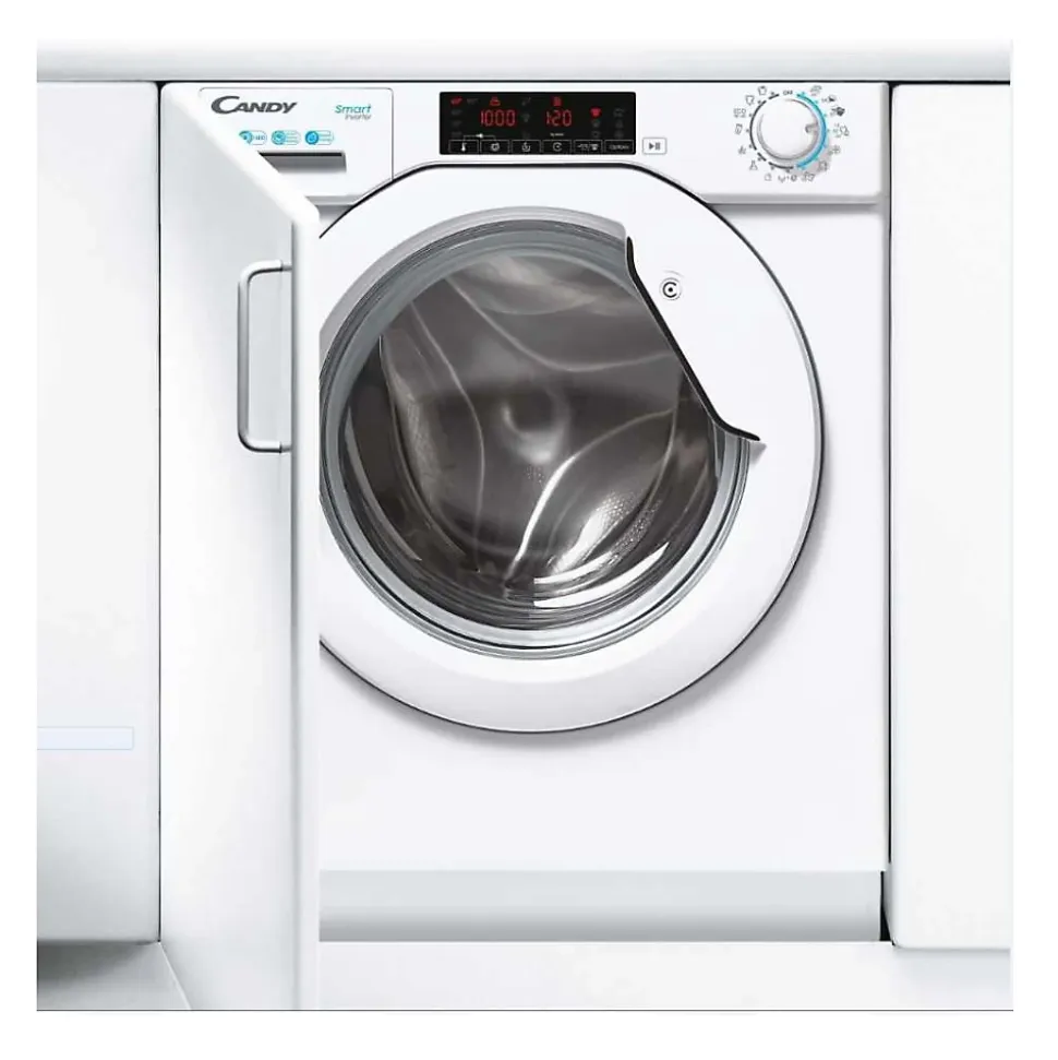 Lave-linge intégrable 8kg 1400 tours/min Candy – En raison de son volume intérieur conséquent, votre lave-linge CBW48TWME-S de CANDY peut accueillir une grande quantité de linge dans le même temps, toujours avec une efficacité parfaite. Cette grande capacité vous permet d’alléger votre charge de travail et donne la possibilité de laver le linge volumineux, tout en vous faisant réaliser des économies d’énergie. Ce lave linge CANDY est très utile pour les familles nombreuses. Grâce à l’affichage du temps restant proposé par ce modèle de lave linge CANDY, vous connaissez à tout moment l’heure de fin exacte de votre cycle de lavage, ce qui vous permet d’organiser votre journée de manière pratique et simple. Profitez de la fonction de départ différé pour faire démarrer automatiquement votre lave linge CANDY au meilleur moment – idéalement pour bénéficier du tarif heures creuses et réaliser ainsi des économies sur votre facture EDF. – Type de produit : Lave-linge.Type de chargement : Frontal.Type de pose : Intégrable.Type de séchage : Evacuation.Classe énergétique (2021) : A.Efficacité d’essorage (2021) : B.Classe niveau sonore Essorage (2021) : B.Niveau sonore lavage (Bd) : 48 .Niveau sonore essorage (Bd) : 75.Consommation d’énergie (kWh/100 cycles) (2021) : 47.Consommation d’eau par cycle (en L) (2021) : 44.Durée du programme eco 40-60 capacité max (2021) : 3:38.Capacité de Lavage (en kg) (2021) : 8.Capacité variable automatique : Oui.Vitesse d’essorage maxi (en tr/min) : 1400.Dosage automatique : Non.Indice de réparabilité : 7.5.Départ différé : Oui.Nombre de programmes : 16.Programmes : Coton, Mixte, Rapide, Délicats …Volume du tambour (L) : 58.Matériau du tambour : Inox.Lave linge connecté : Non.Ecran : Oui.Affichage temps restant : Oui.Moteur à induction : Non.Anti-débordement : oui.Détecteur anti-innondation :