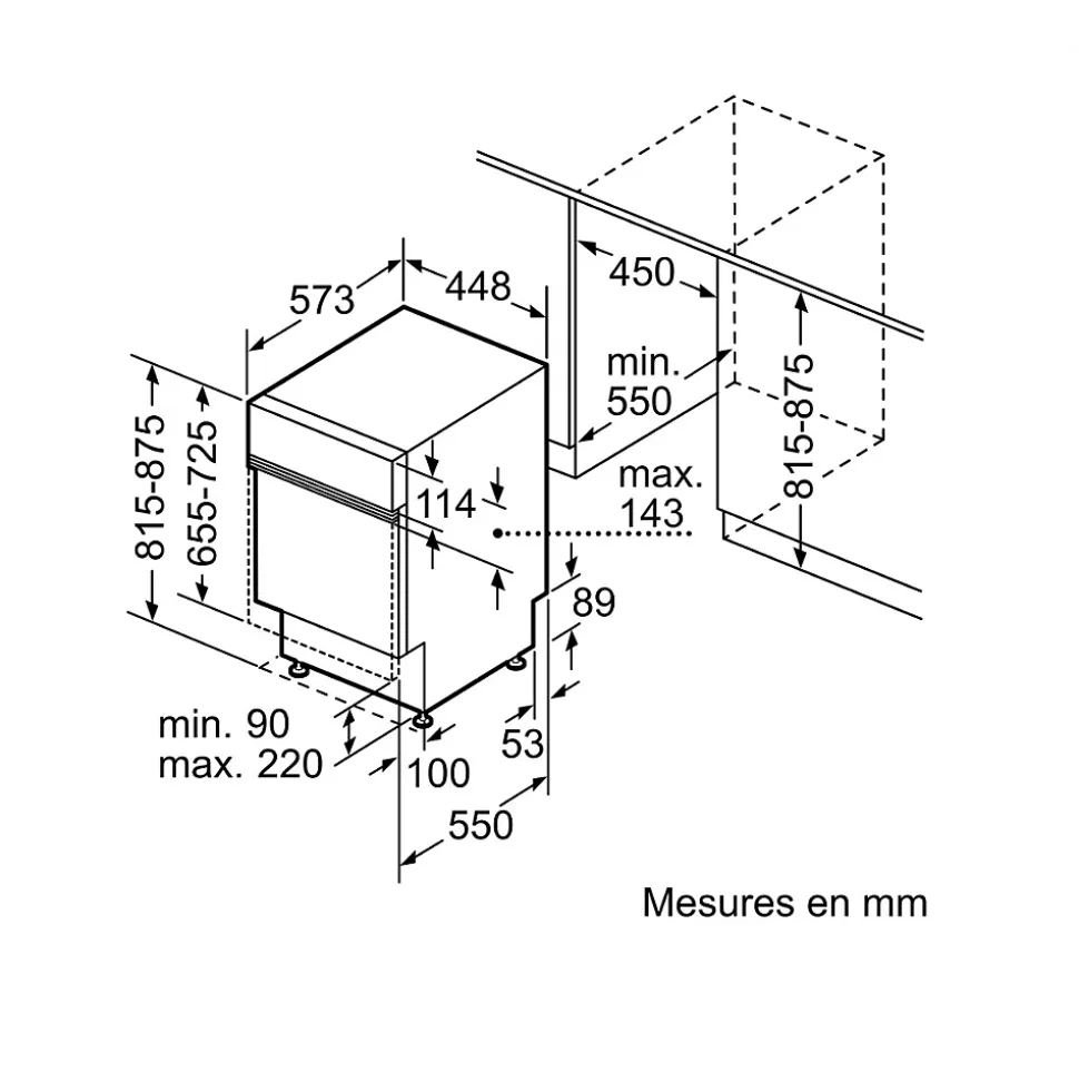 Lave-vaisselle 45cm 10 couverts 42db intégrable avec bandeau Siemens – Lave-vaisselle zeolith iQ500 Siemens SR55ZS10ME avec séchage exceptionnel et éclairage intérieur. Programme brilliantShine – un séchage efficace et en douceur de votre vaisselle fragile. Séchage Zeolith – pour un lave-vaisselle qui sèche plus vite, tout en faisant des économies d’énergie. EmotionLight – illuminez l’intérieur de votre lave-vaisselle d’une douce lumière bleue. Votre lave-vaisselle est à votre écoute grâce à la commande vocale. Home Connect : contrôlez votre lave-vaisselle intelligent, où que vous soyez. – Type de produit : Lave-vaisselle intégrable.Design: Encastrable.Classe d’efficacité énergétique: C.Consommation énergétique pour 100 cycles Eco: 59 kWh.Nombre maximum de couverts: 10.Consommation d’eau du programme Eco: 8.9 L.Durée du programme Eco: 3:15 h.Niveau sonore: 42 dB(A) re 1 pW.Classe de niveau sonore: B.Moteur iQdrive.Home Connect : contrôle et diagnostic à distance.Technologie de séchage Zeolith.6 programmes : Eco 50 °C, Auto 45-65 °C, Intensif 70 °C, Quotidien 60 °C, brilliantShine 40 °C, Favourite (Pré-rinçage).4 options : Home Connect, Shine + Dry, Zone Intensive, varioSpeed Plus (3 fois plus rapide).Machine Care.Pre-Rinse.Fonctions complémentaires via l’application Home Connect : HygienePlus, Silence à la demande.EmotionLight : éclairage intérieur bleuté.Inscriptions en texte clair.Display avec affichage du temps restant (ext.).Echangeur thermique qui protège la vaisselle.Boîte à produits maxiPerformance.Départ différé : 1-24 h.Auto 3in1, détection lessivielle automatique.AquaStop : garantie Siemens Electromenager en cas de dégât des eaux – pour toute la durée de vie de l’appareil.Sécurité enfants.Système protectVerre, conserve l’éclat des verres.Triple filtre autonettoyant.Paniers flexComfort Pro avec touchPoints bleus.Tiroir à couverts : 3ème niveau de chargement.Panier supérieur réglable avec rackMatic (3 niveaux).Panier supérieur avec 3 picots
