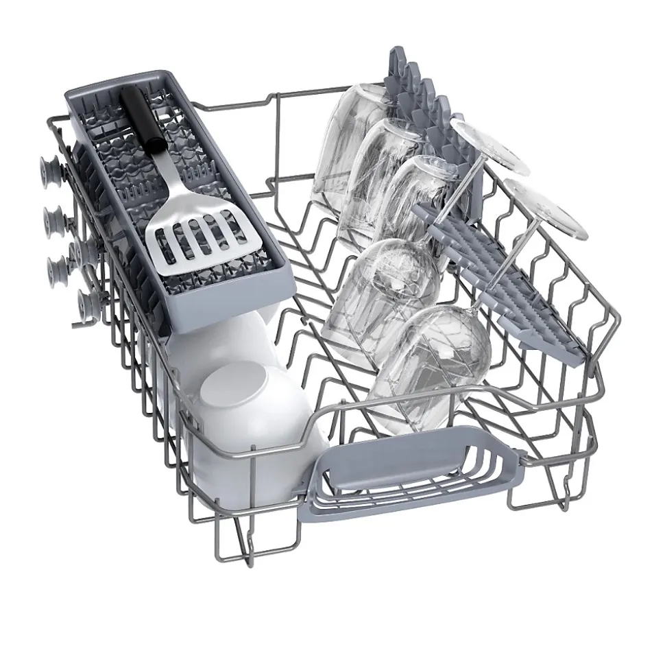 Lave-vaisselle intégrable Bosch SPI2HKS42E, 45 cm, 10 couverts, 46 dB, 5 programmes dont Auto 45-65°C, options VarioSpeed Plus et Séchage Extra, connectivité Home Connect, fonction silence et technologie Bosch avancée pour un lavage efficace et économe en énergie.