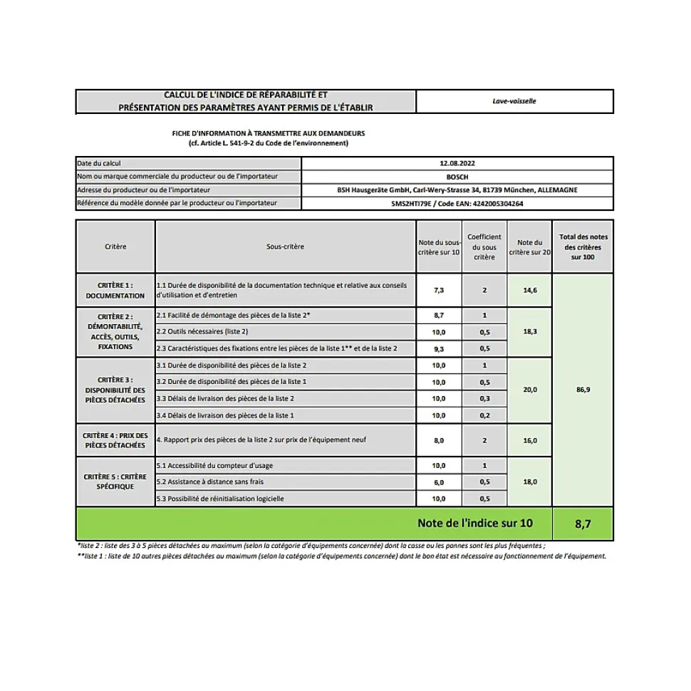 - Consommation énergétique et hydrique économe avec environ 9,5 litres d’eau par cycle