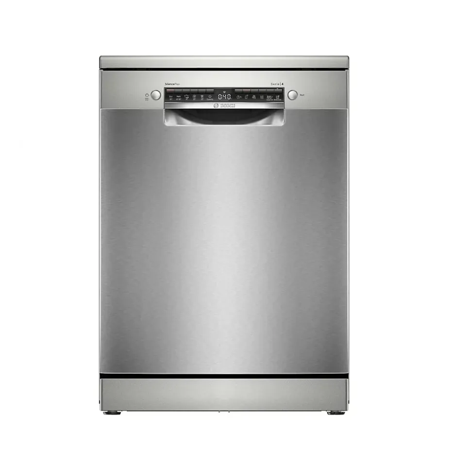 Lave-vaisselle 60cm 14 couverts 42db Bosch – Lave-vaisselle SMS4EMI06E de BoschMeilleures performances de séchage avec le lave-vaisselle connecté et son contrôle intelligent.Efficient Dry : Performance de séchage améliorée grâce à l’ouverture de porte automatique en fin de cycle.Tiroir et paniers VarioFlex : Flexibilité accrue pour le rangement de votre vaisselle à tous les niveaux.Tiroir à couverts : Libérez de la place pour les couverts et les petits ustensiles de cuisine.Silence Plus : un lave-vaisselle exceptionnellement silencieux à 42 dB.Home Connect : Appareils électroménagers dotés d’une connectivité intelligente pour une vie quotidienne facilitée. – Type de produit : Lave-vaisselle.Type d’installation : Encastrable.Gamme : Serie 4.ype de construction du produit : Autonome.Installation : Autonome avec dessus amovible.Couleur/matériau du panneau de commande : couleur acier inoxydable, peint.Dessus amovible : Oui.Charnières coulissantes : Non.Socle réglable : Non.Émissions de bruit aérien : 42 dB(A) re 1 pW.Classe d’émission de bruit aérien : B.Durée du programme : 3h35.Nombre maximum de places : 14.Liste des programmes : Auto 45-65°C, Programme personnalisé, Eco, Intensif, Rapide, Silencieux 50°.Autres options : EfficientDry, Machine Care, Demi-charge, Démarrage à distance, SpeedPerfect Plus.Système de séchage : Échangeur de chaleur + ouverture automatique de la porte.Troisième panier : Troisième panier VarioDrawer.Dispositif de réglage du panier supérieur : Oui.Profondeur avec porte ouverte à 90 degrés : 1 155 mm.Hauteur du plateau amovible : 30 mm.InfoLight : Non disponible.Voyant d’état : Non.EmotionLight: Non.Emotionlight pro : Non.Protection précise du verre : Non.EcoSilence Drive : Oui.AquaSensor : Oui.Système de gestion de l’eau : Non.Reconnaissance des détergents :