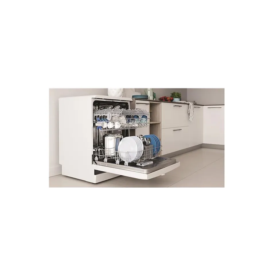 Le lave-vaisselle Indesit D2FHK26 14 couverts blanc offre une grande capacité idéale pour les familles, avec 6 programmes dont un programme rapide Fast & Clean 28′ et une fonction Push&Go pour un usage facilité. Il est équipé d’un système de lavage et séchage de classe A, économe en énergie (classe E) et en eau (9,5 litres par cycle), avec un niveau sonore réduit à 46 dB. Le panier supérieur est réglable en hauteur pour plus de flexibilité. Le départ différé 2-4-8 heures permet d’optimiser l’utilisation selon les besoins.