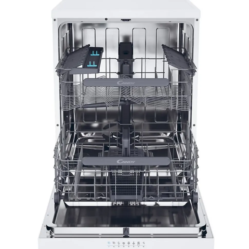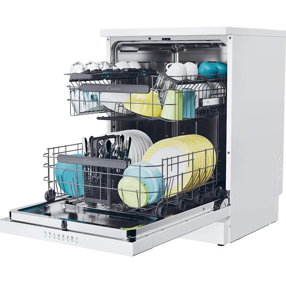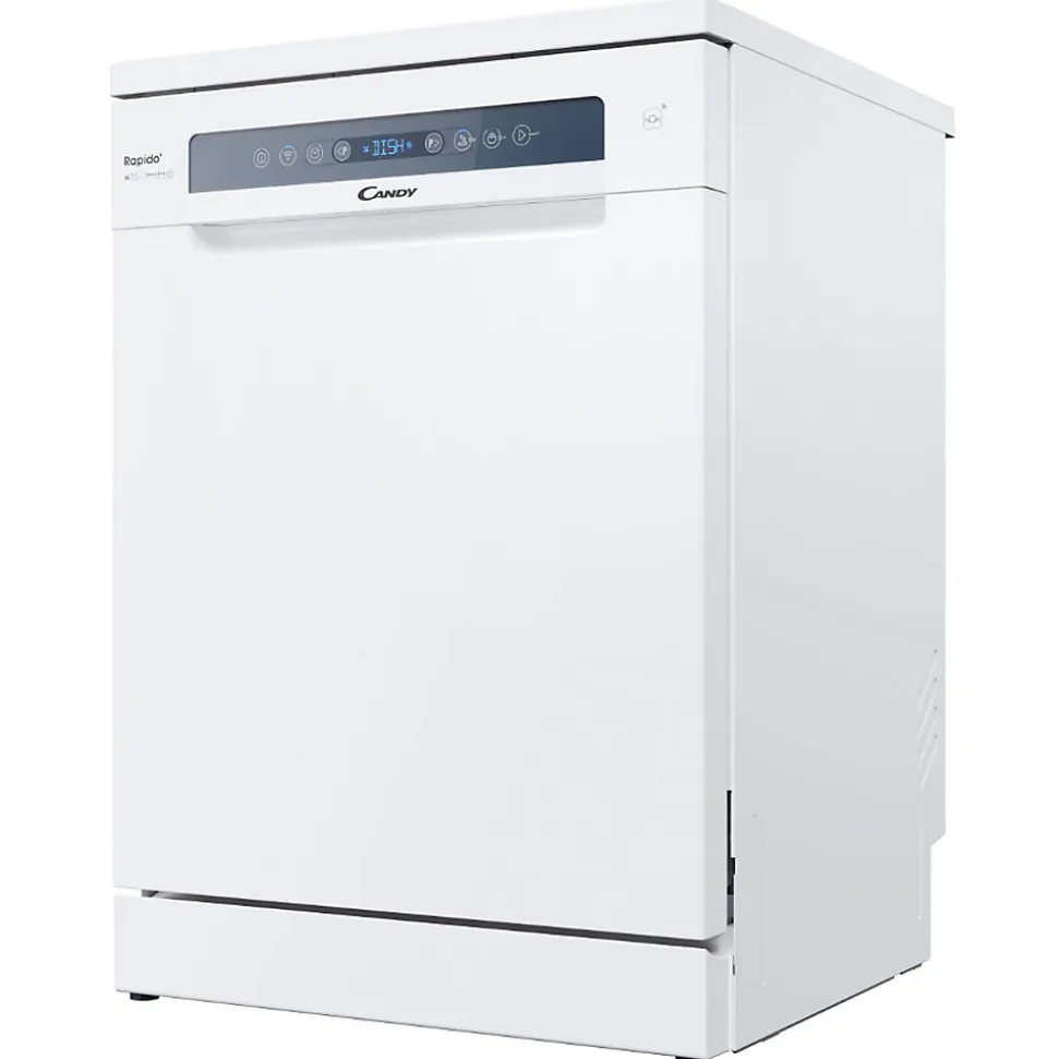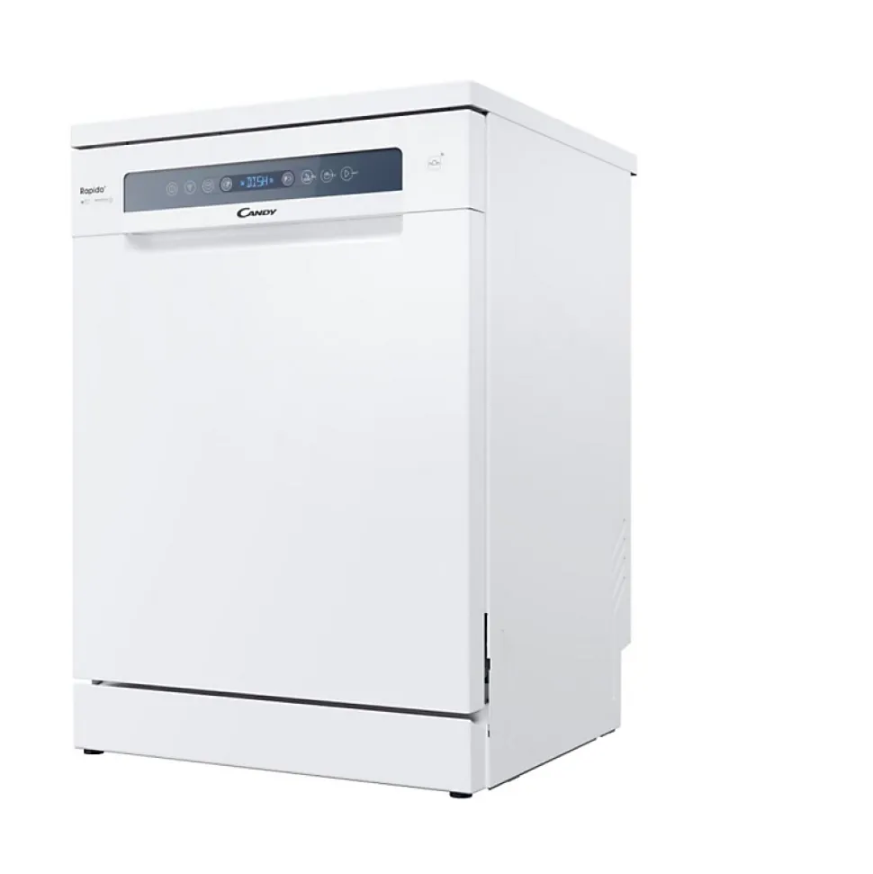 Le Lave-vaisselle pose libre Candy Rapido CF5C1F0W offre une capacité de 15 couverts, 8 programmes dont Wash&Dry 35 min, connectivité WiFi via l’application hOn, ouverture de porte automatique pour un séchage efficace et un moteur Speed-Drive Inverter silencieux et économique. Il est conçu pour les foyers moyens à grands avec un bon équilibre entre performance et consommation énergétique (classe C).