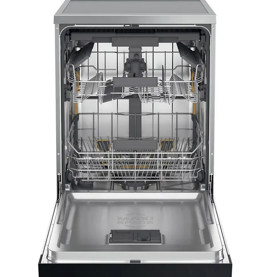 Lave-vaisselle 60cm 15 couverts 41db inox Whirlpool – Lave-vaisselle pose libre Whirlpool W7FHS31S avec Programmateur 6ème Sens : Jusqu’à 40% d’économies d’eau et de temps. La technologie 6ème Sens adapte automatiquement la durée du cycle, la température et la quantité d’eau nécessaire pour un lavage impeccable. Natural Dry : +99% d’amélioration de séchage. Système d’ouverture automatique de la porte en fin de cycle pour un séchage naturel, optimal et économique. Option Extra Silence : Une option spécifique qui réduit le niveau sonore jusqu’à 3 décibels tout en atteignant des performances de lavage et de séchage parfaites. Cuve Maxi Space : Plus de vaisselle restante dans l’évier ! Une cuve spacieuse qui offre 10% d’espace supplémentaire pour charger votre vaisselle. PowerClean Pro : Des jets haute pression en fond de cuve pour éliminer les salissures les plus résistantes et gagner 30% d’espace de rangement supplémentaire dans le panier inférieur. – Type de produit : Lave-vaisselle pose libre.Nombre de couverts : 15.Niveau sonore : 41 dB.Conso eau : 9,5 L / cycle de référence.Conso élec. : 86 kWh / 100 cycles.Durée Prog. ECO : 210 min.Label énergie : D.Catégorie sonore : B.Indice de réparabilité : 7,9 / 10.Le + produit : Tiroir à couverts modulable.Nombre de programmes : 8.Options : Demi-charge, Extra Dry, Extra Silence (-3 dB), Antibactérien et PowerClean Pro.Panier supérieur réglable en hauteur.Paniers modulables.Moteur Inverter.Affichage du temps restant.Sécurité anti-débordement.Ouv. porte auto Fin de cycle : Oui.Matériau de la cuve : Inox.Voyant de rinçage : Oui.Voyant de sel : Oui.Départ différé : Jusqu’à 24 heures.Afficheur Temps Restant : Oui.Connecté : Non.Couleur du bandeau : Silver.Top amovible : Oui.Couleur : Inox.Dimensions (LxHxP) : 60 x 85 x 59 cm.Poids net : 47 Kg.