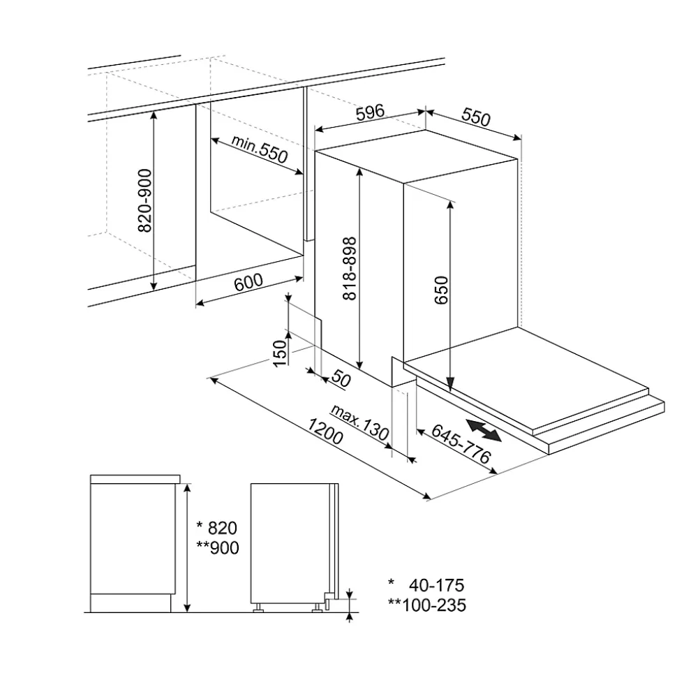 Lave-vaisselle encastrable 14 couverts l. 60 cm STL362DQ Smeg noir